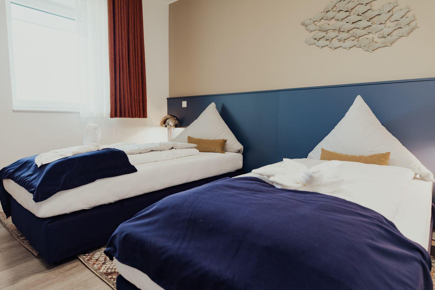 Die Ferienwohnung "Fregattvogel" bietet auf 82 m² Platz für bis zu 4 Personen und eignet sich ideal für kleine Familien. Das exklusive Apartment im Obergeschoss ist bequem mit einem Fahrstuhl erreichbar. Ein 16 m² großer Sonnenbalkon mit eigenem Strandkorb und kleinem Abstellraum ergänzt das Angebot. Die großzügigen Schlafzimmer, der gemütliche Wohn- und Essbereich sowie das hochwertig eingerichtete Badezimmer bieten zahlreiche Annehmlichkeiten. Wellnessmomente in der Infrarot-Wärmekabine.