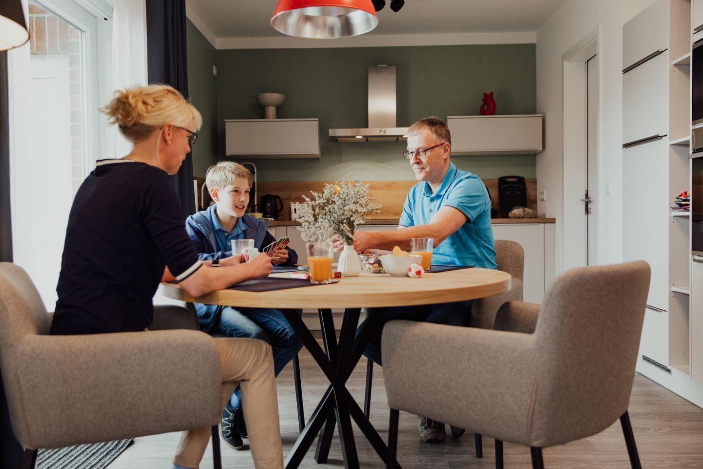 Der geräumige Wohn- und Essbereich lädt zum gemeinsamen Entspannen oder geselligen Spieleabenden ein, während die hochwertige Küche über viele Extras für leckere Speisen verfügt. Das Besondere: Die Ferienwohnung bietet eine exklusive Wellness-Ausstattung mit integrierter Infrarot-Wärmekabine und modernem Badezimmer. Ein eigener Strandkorb, ein sicherer Zimmersafe sowie ein abschließbarer Fahrradraum mit 220 Volt Ladeanschluss für E-Bikes sind weitere Ausstattungshighlights.