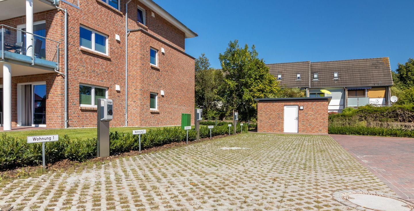 Ein eigener Parkplatz direkt am Haus sowie eine E-Ladesäule für Ihr Elektroauto stehen zur Verfügung. Im abschließbaren Nebengebäude befinden sich Einstellplätze für Fahrräder, die mit 220 Volt Ladeanschlüssen für E-Bikes ausgestattet sind.