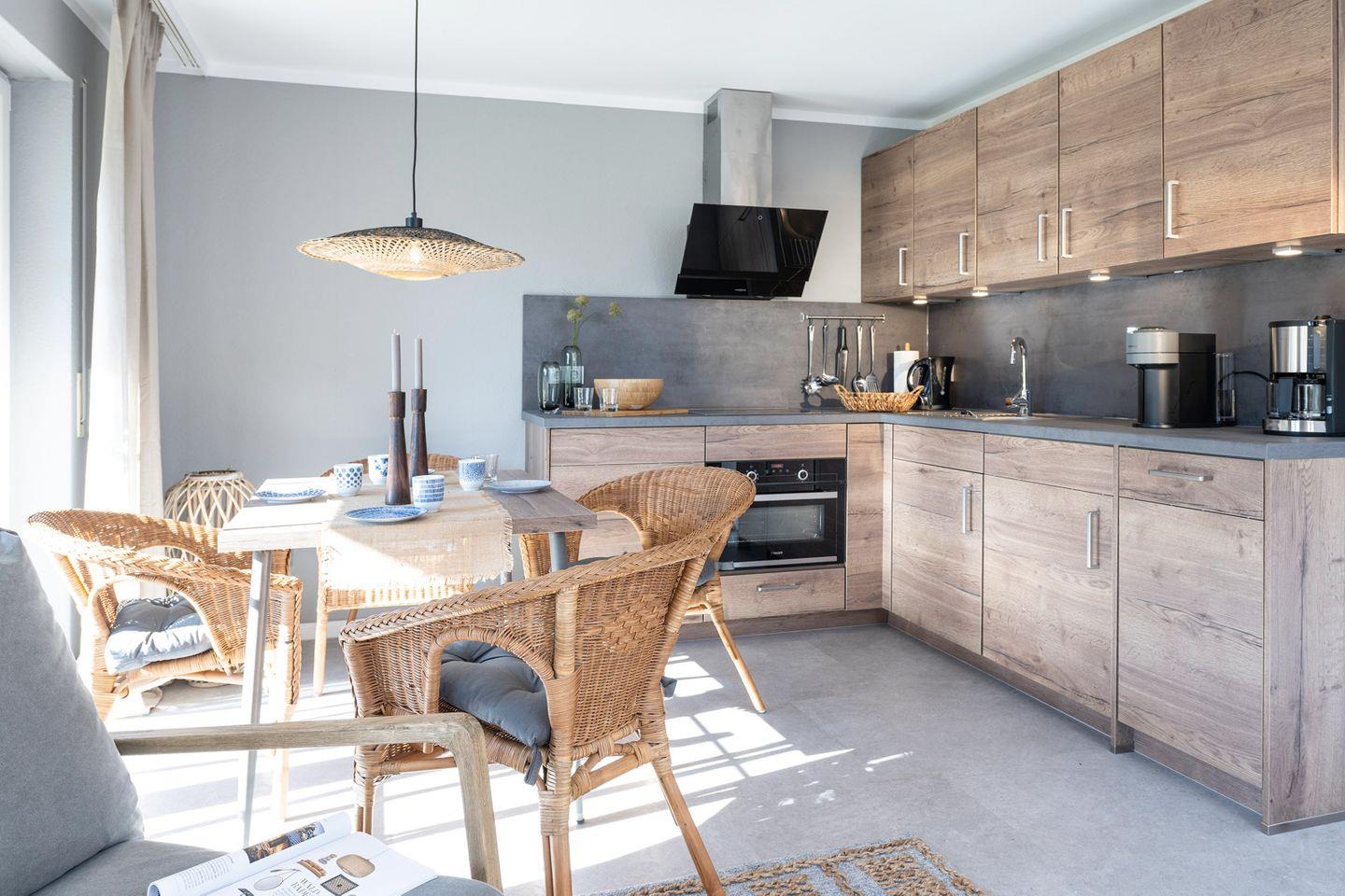Unsere Ferienwohnung wurde im Jahr 2022 komplett renoviert und bietet eine großzügige Fläche von 55 m². Sie ist liebevoll gestaltet und bietet genug Platz für bis zu 4 Personen, darunter 2 Erwachsene. Das Badezimmer verfügt über eine moderne ebenerdige Dusche, während die voll ausgestattete Küche mit einem Herd mit 4 Ceran-Kochplatten, Backofen, Kühlschrank mit Eisfach, Geschirrspülmaschine und Waschmaschine keine Wünsche offen lässt.