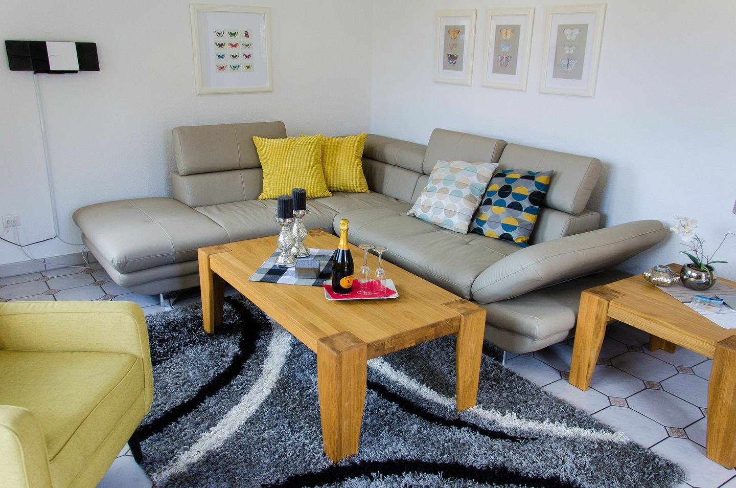 Diese liebevoll eingerichtete Unterkunft bietet Platz für 4 Personen auf 80 m². Das geräumige Wohnzimmer mit Flachbildfernseher lädt zum Entspannen ein.