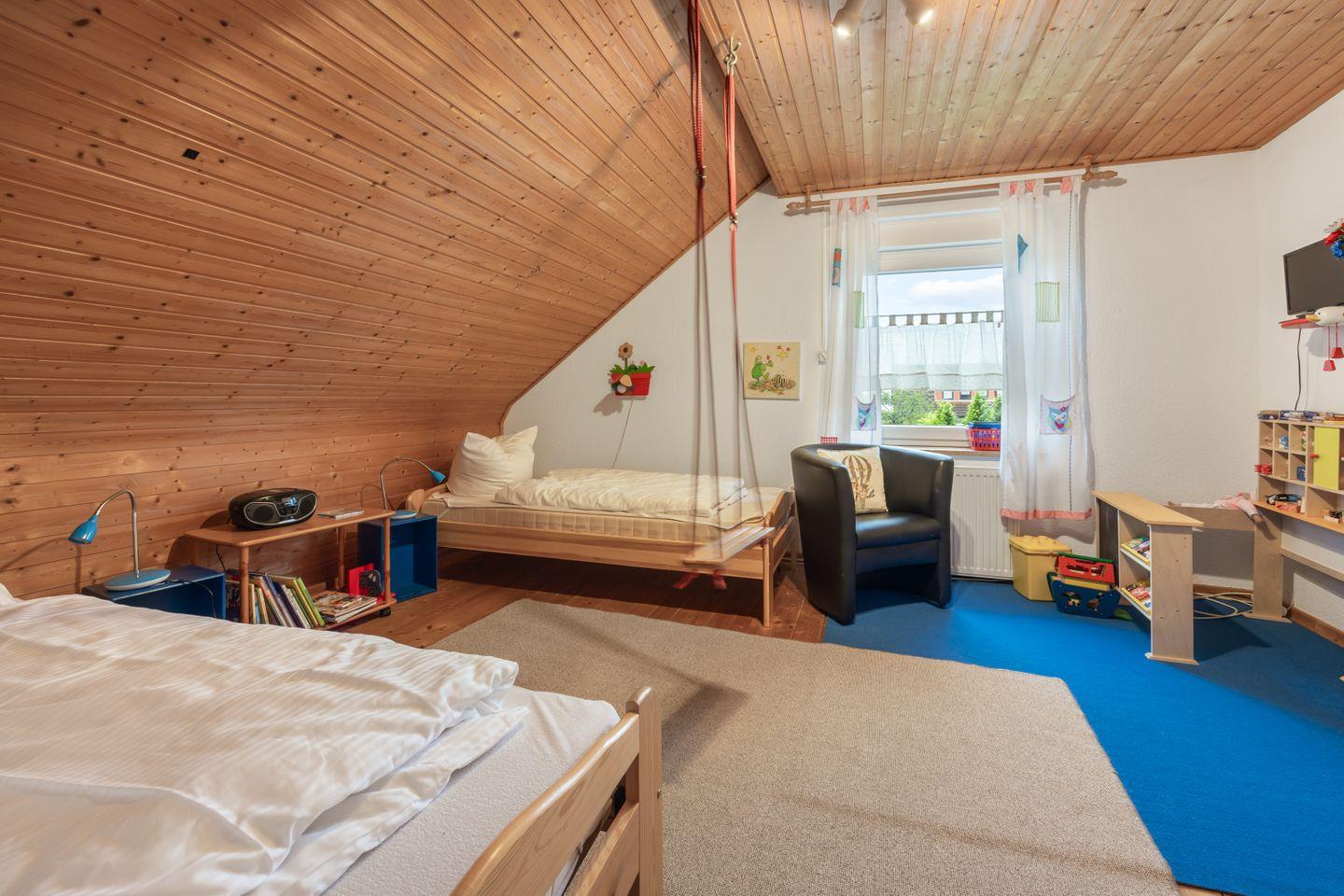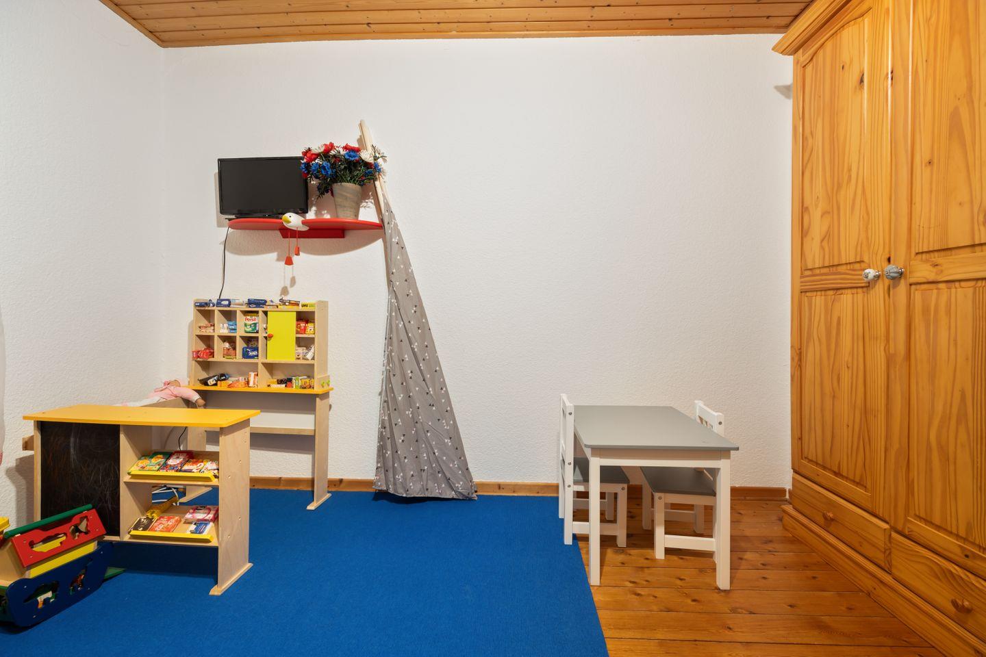 Der Wohnraum ist mit einer bequemen Sitzgruppe, Kamin, Radio, TV und DVD-Player ausgestattet! Die Küchenzeile verfügt über eine Spülmaschine, Mikrowelle und Kaffeemaschine. Ein Esstisch mit 6 Stühlen sowie ein Kinderhochstuhl bieten Platz für gemeinsame Mahlzeiten. In den 2 Schlafzimmern mit Doppelbetten und im Kinderzimmer mit vielfältigem Spielmaterial, Spielzelt, Puppenhaus und Deckenschaukel fühlen sich auch die kleinen Gäste wohl. Ein zusätzliches Reisebettchen steht zur Verfügung.