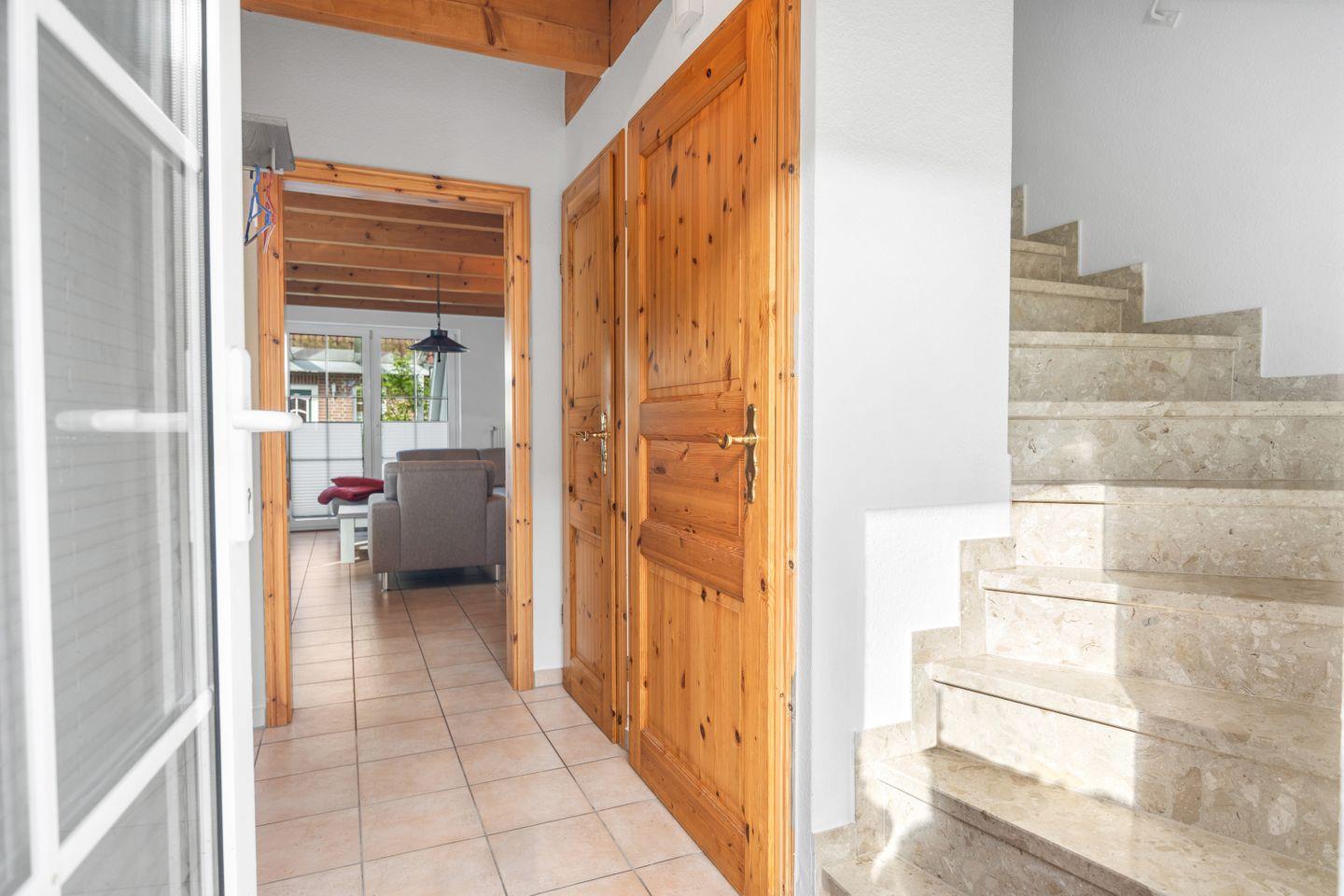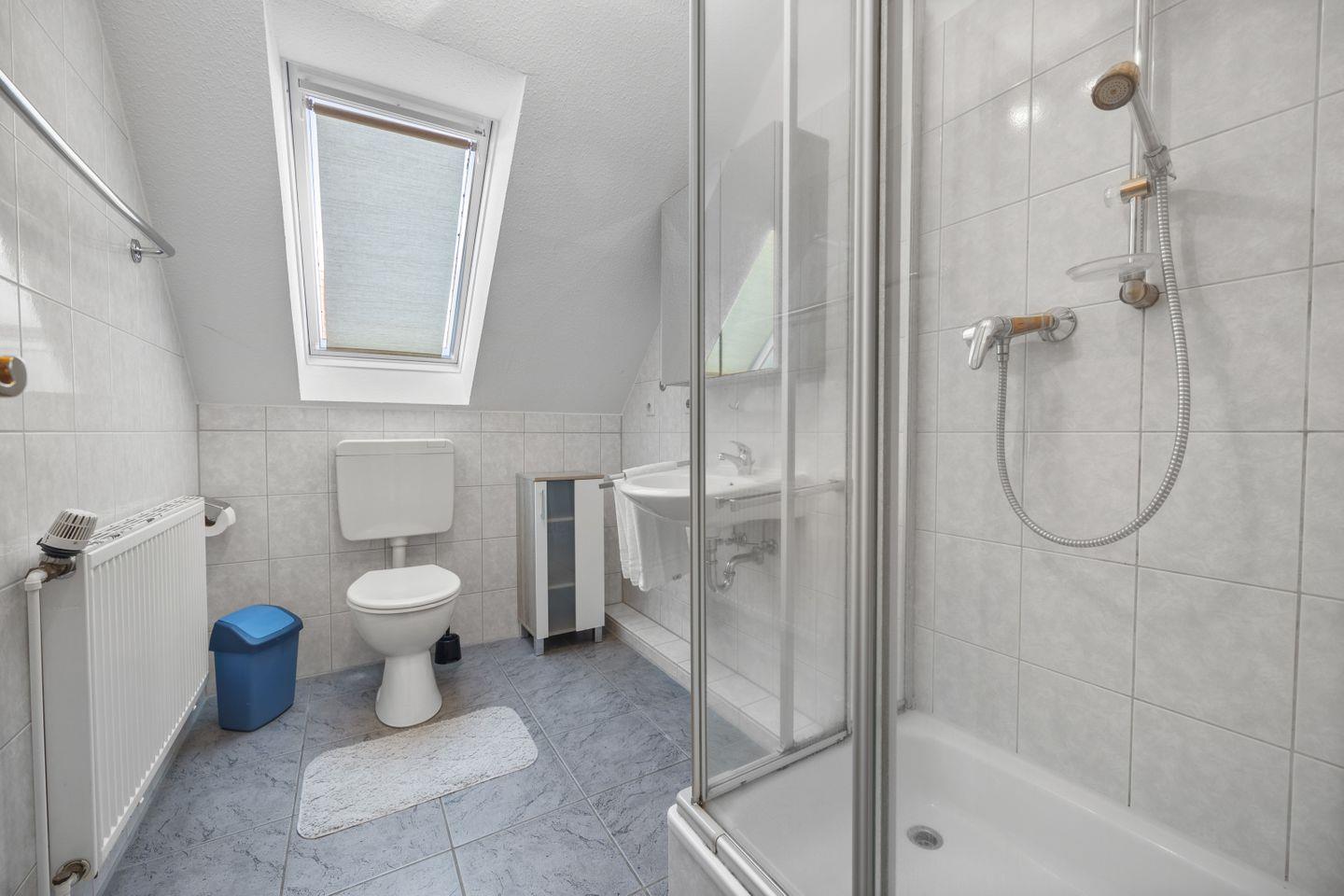 Im Eingangsbereich (Flur) befinden sich das Gäste-WC und der Treppenaufgang ins Obergeschoss. Die Wohnung verfügt im Erdgeschoss über einen gemütlichen Wohnbereich mit Sitzgruppe, Essbereich und voll ausgestatteter Küchenzeile. Durch eine Glastüre gelangen Sie zur Terrasse mit Gartenmöbeln, Sonnenschirm und einem kleinen Schuppen zu Ihrer Nutzung (enthält Grill. etc..). Im Obergeschoss befinden sich zwei Schlafzimmer sowie das Bad mit Dusche und WC. Das eine Schlafzimmer ist mit einem Doppelbett und einem Kinderreisebett ausgestattet. Im zweiten Zimmer sind zwei Einzelbetten vorhanden.