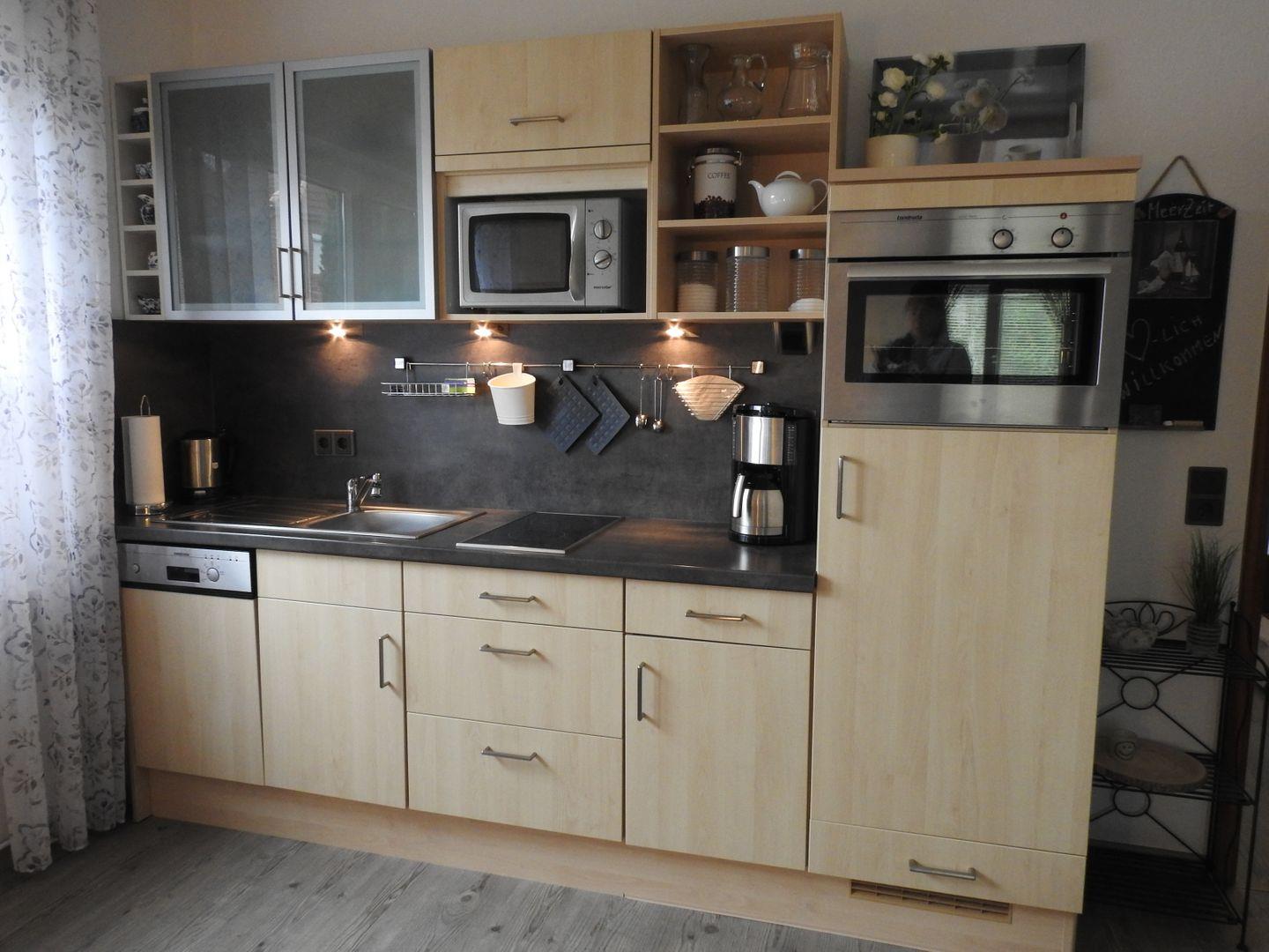 Komfortabel und geschmackvoll eingerichtet: Die Wohnung ist modern und hell ausgestattet und verfügt über eine Kabel-TV-Anlage und WLAN. Die kleine Küchenzeile bietet alles, was Sie brauchen: Wasserkocher, Eierkocher, Kühlschrank, Mikrowelle, Kaffeemaschine, Toaster, Backofen mit 2-Platten-Ceranfeld und Spülmaschine.