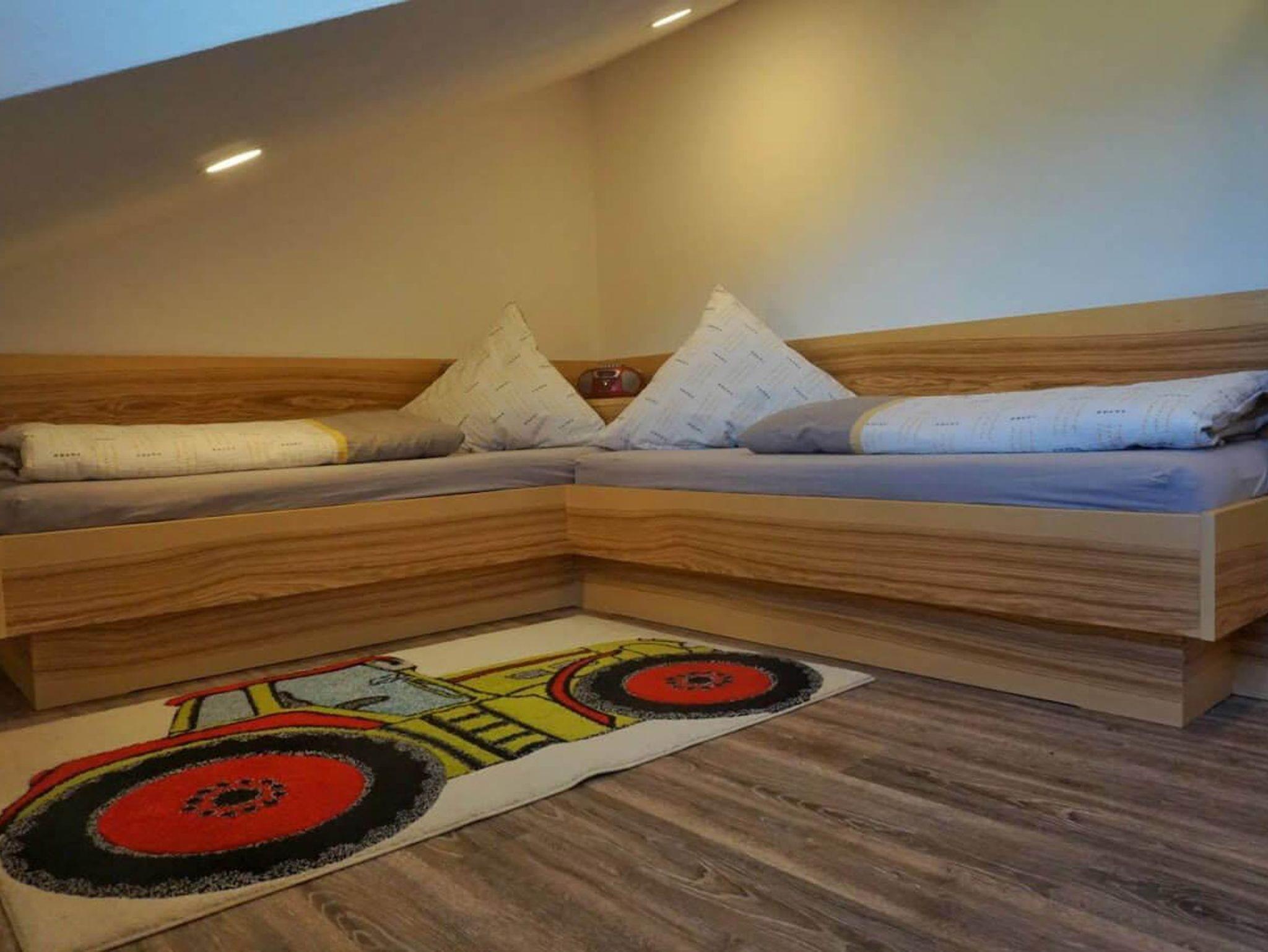 Genießen Sie Ihren Urlaub in unserer neuen Ferienwohnung (ca. 70 m² plus Balkon) im Dachgeschoss. Sie bietet Platz für bis zu fünf Personen. Die Ferienwohnung verfügt über eine offene, voll eingerichtete, moderne Wohnküche. Die Küchenzeile ist mit Geschirrspüler, Kühlschrank mit Gefriermöglichkeit, Backofen, Toaster, Wasserkocher und Kaffeemaschine voll ausgestattet. Im offenen Wohnraum finden Sie zudem einen Essplatz, ein Sofa, einen TV sowie den Zugang zum Balkon mit herrlichem Berg- und Seeblick. Die Ferienwohnung verfügt über zwei separate Schlafzimmer. Dabei verfügt das eine Schlafzimmer über ein Doppelbett und ein Einzelbett und das andere Schlafzimmer über zwei Einzelbetten, die über Eck stehen. Das Badezimmer ist mit Dusche, WC, Handtuchwärmer, Haarföhn, Waschbecken und Kinderwaschbecken ausgestattet. Die Kinderausstattung umfasst eine Spielecke, zwei Hochstühle, zwei Kinderbetten sowie ein Kinderwaschbecken. WLAN, Bettwäsche, Handtücher und Parkplatz stehen Ihnen kostenfrei zur Verfügung.