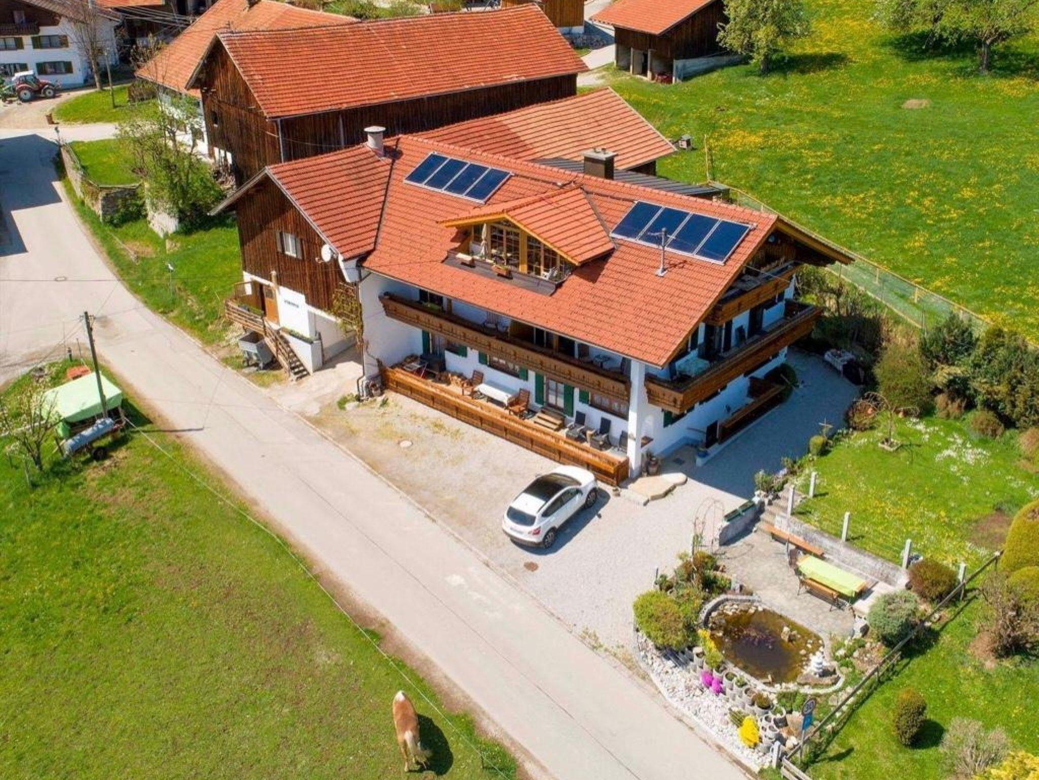 Unsere großzügige und gemütliche Ferienwohnung Alpenblick befindet sich im Erdgeschoss. Der Bauernhof mit einer Vielfalt an Tieren ist nur 150 Meter von unserer Unterkunft entfernt. Kinder können sich gerne auf unserem anliegenden Spielplatz austoben. Sie können entspannte Tage in einer unserer Ferienwohnungen bei ruhiger Ortsrandlage verbringen. Alle Ferienwohnungen haben direkten Zugang zum Balkon oder eine Terrasse.