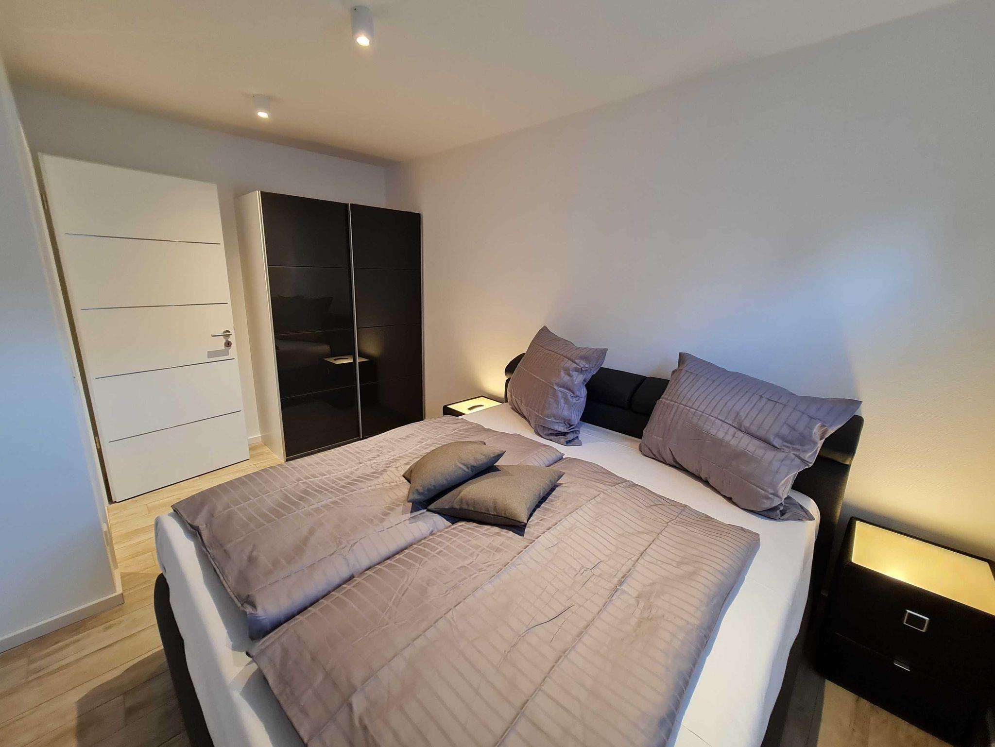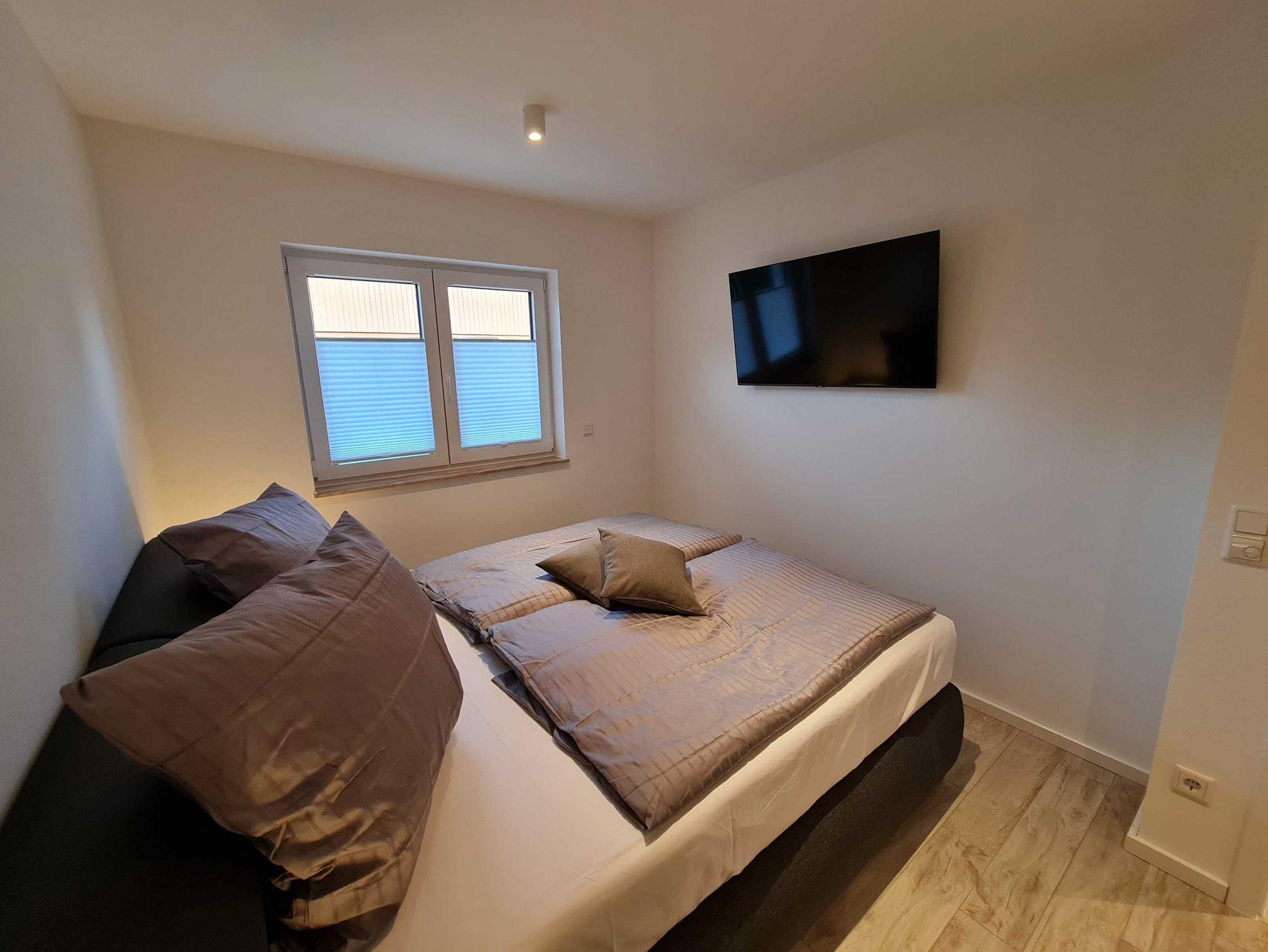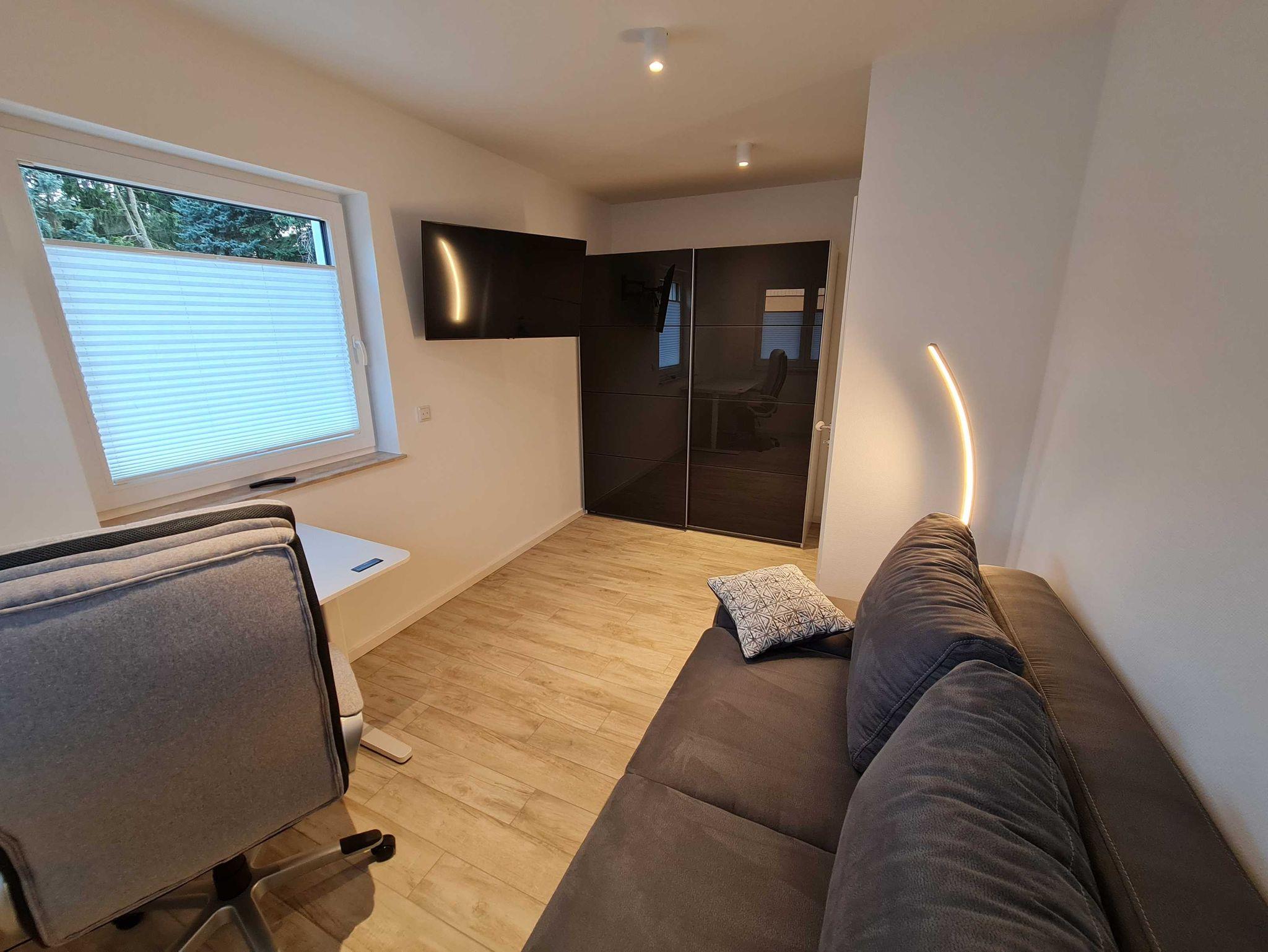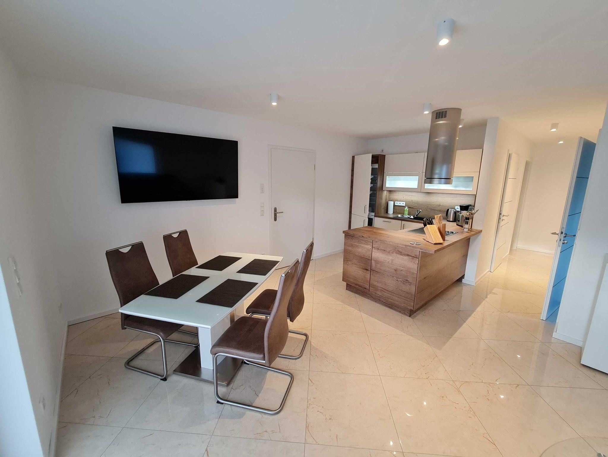 Die 3-Zimmer Wohnung ist im EG des Hauses gelegen und ca. 70 qm groß. Eigene Terrasse, ebenerdige Dusche, Waschmaschine, hochwertige Einbauküche mit Geschirrspüler, Backofen und vollständiger Ausstattung, LAN und W-LAN sind nur einige High-Lights. Ein höhenverstellbarer Schreibtisch und in jedem Zimmer ein Q-LED Sat TV, Abstellraum, Fussbodenheizung und elektrische Rolläden sprechen für einen überdurchschnittlichen Comfort. Eine große gemütliche Couch im Wohnzimmer. eine comfortable Schlafcouch im Arbeitszimmer und ein bequemes Doppel-Boxspringbett versprechen gemütliche Abende und traumreiche Nächte. Der Garten mit Grillmöglichkeit kann gern mit benutzt werden.