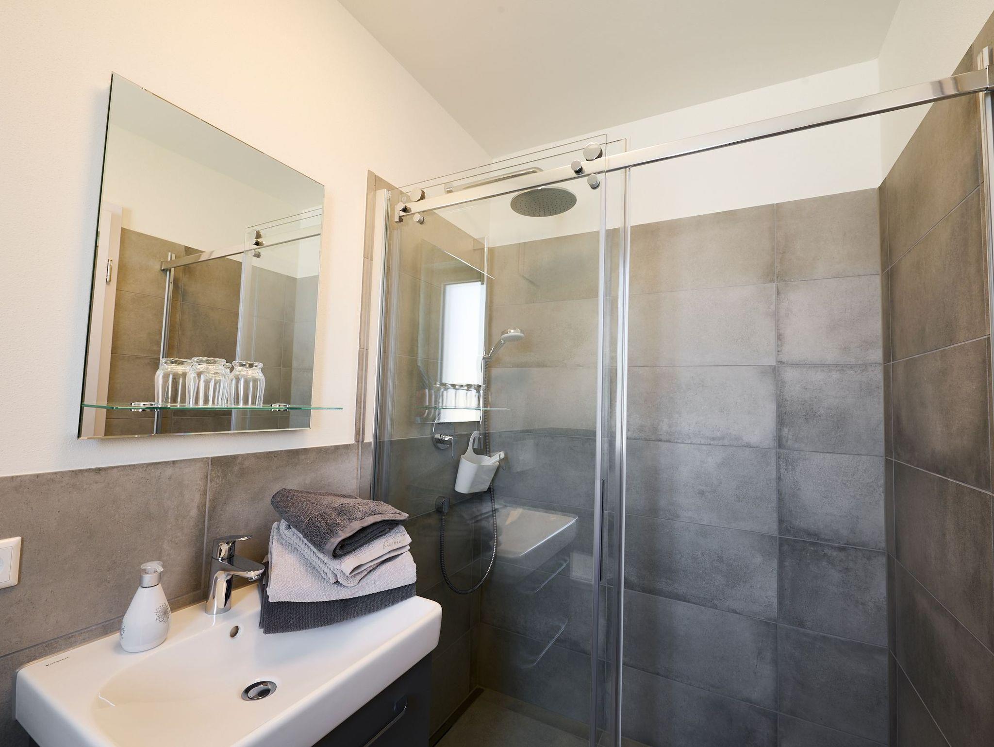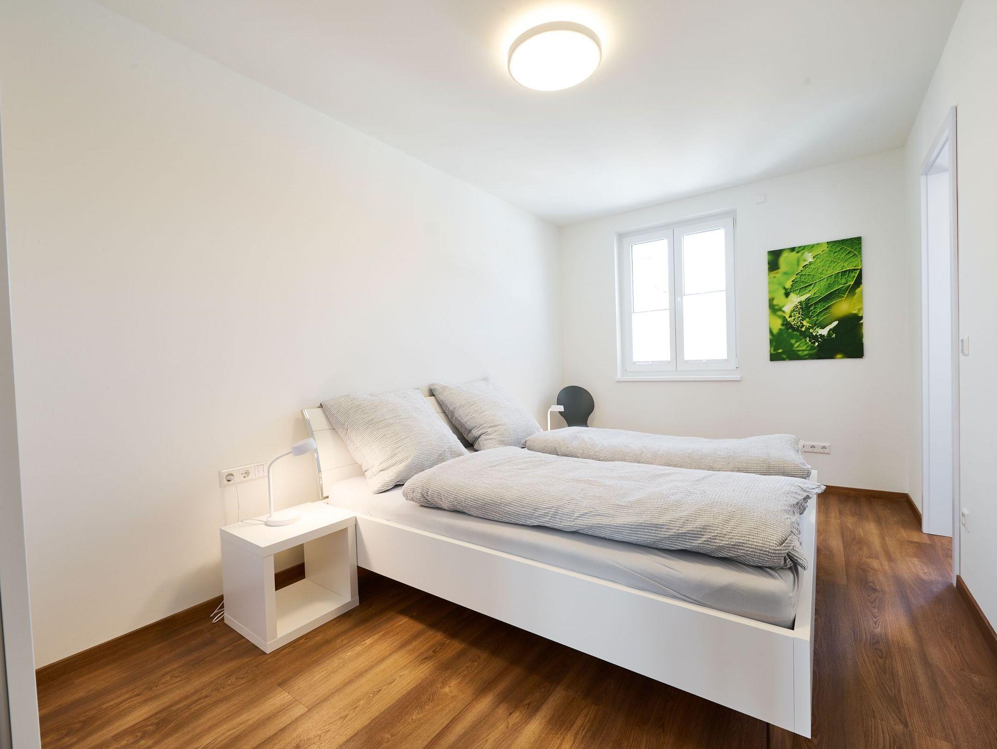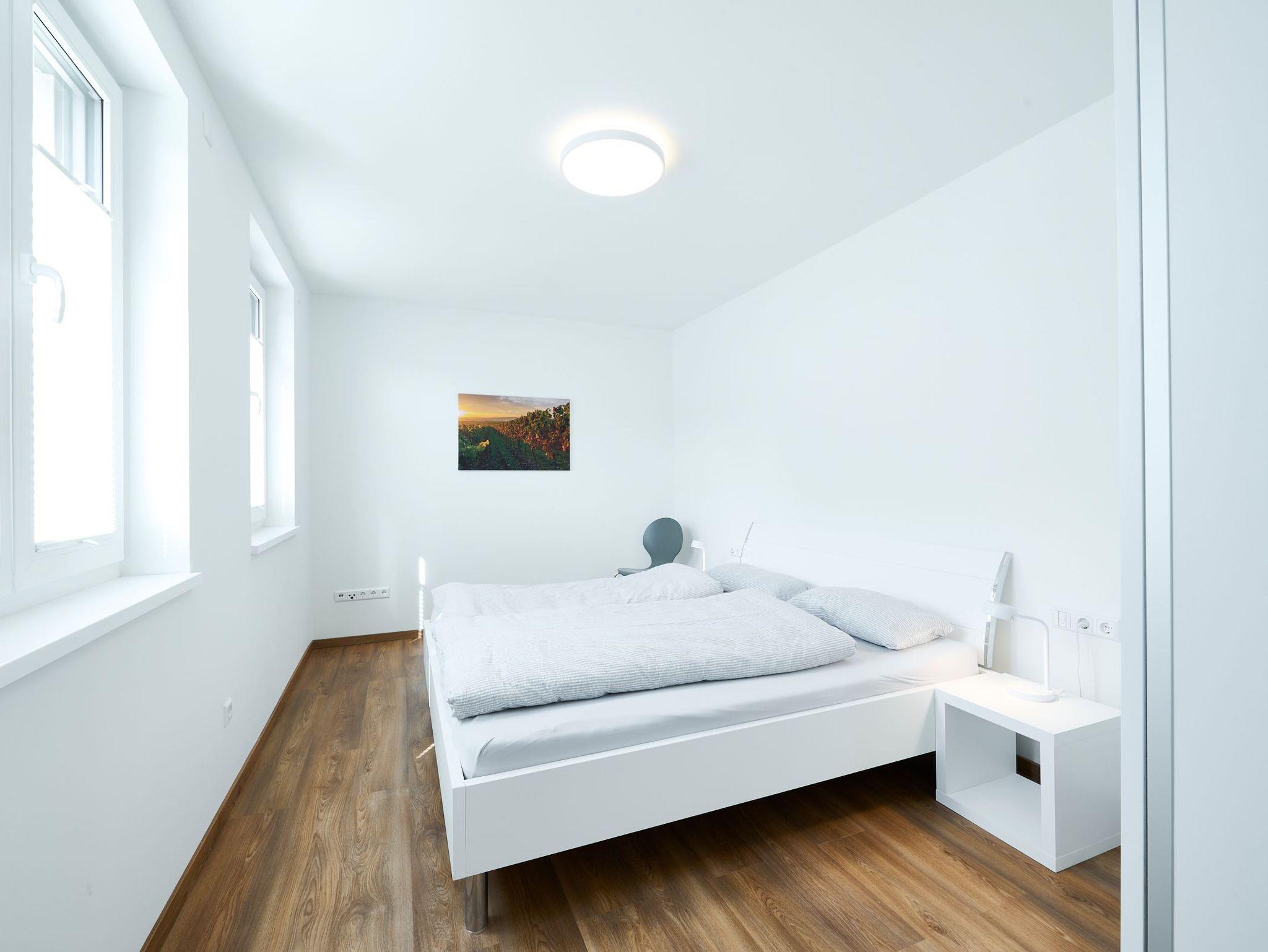 Die modern eingerichtete Ferienwohnung liegt im zweiten Stock unseres Neubaus. Dank der Erdwärmeheizung, Kühlung und der PV-Anlage ist die Klimatisierung CO2 neutral! Die dreifach verglasten Fenster, sind alle mit Rolläden zu verdunkeln. Bei schönem Wetter können Sie sich in unserem Innenhof oder auf unserem Gartengrundstück entspannen. Insgesamt haben wir 3 Ferienwohnungen, die wir vermieten. Fewo Riesling (3 Personen max.), Fewo Silvaner (2 Personen max.) und Fewo Grauburgunger (4 Personen max.). Des weiteren haben wir eine wunderschöne, gemütliche Vinothek, in der wir regelmäßig Weinproben anbieten. Gerne auch auf Nachfrage.Eine Möglichkeit zum Aufladen eines E-Bikes besteht außerdem auch noch.