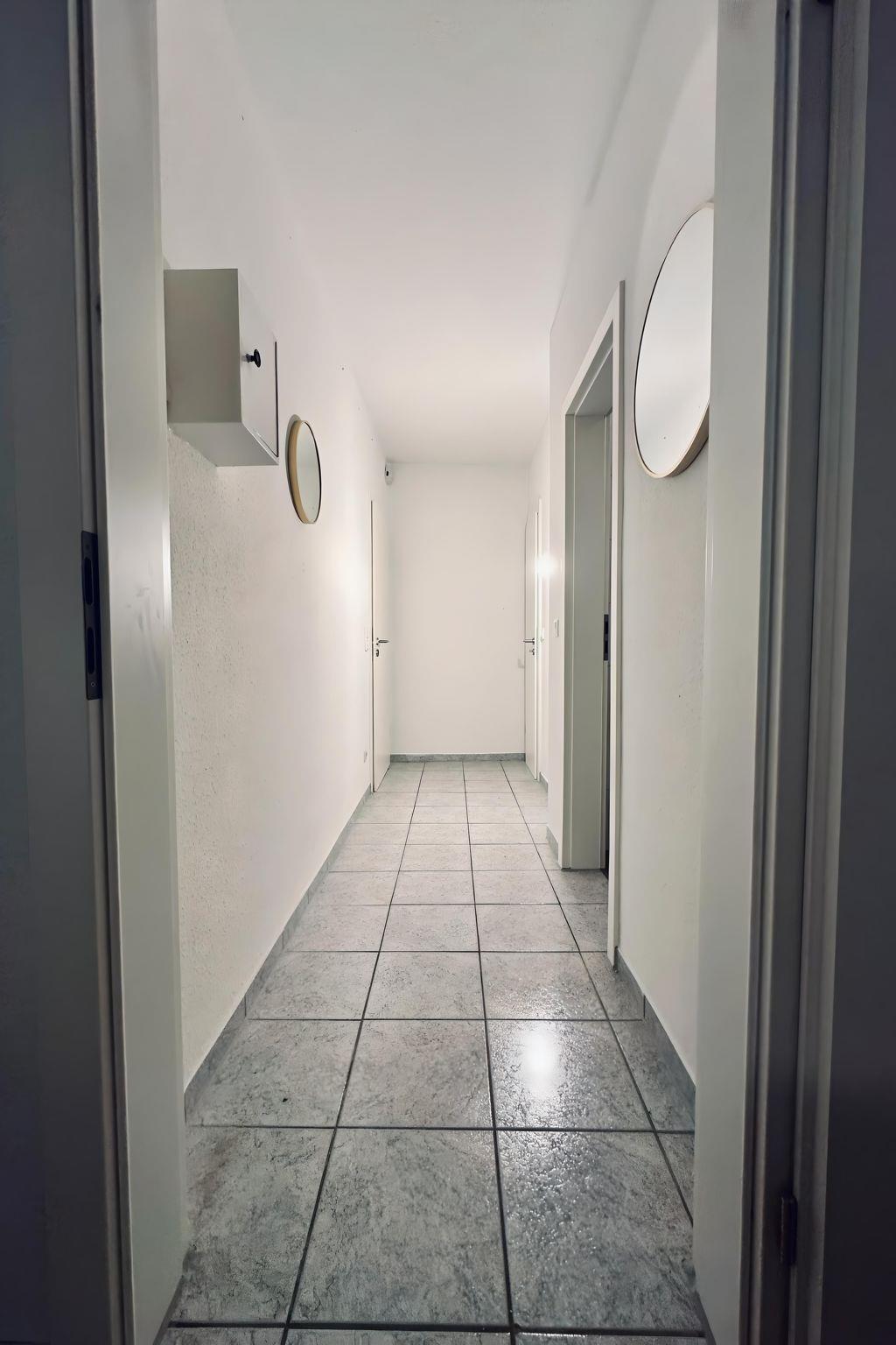 The interior design of our 40 m² holiday flat focuses on intelligent use of space, with comfort and functionality at the forefront. Guests can expect an open-plan living area with two inviting single beds, practical bedside tables and a spacious wardrobe. The adjoining kitchenette is perfectly equipped with a two-ring hob, a filter coffee machine and a kettle for preparing your own meals. A modern bathroom with shower completes the interior. For added convenience, there is free internet access and a washing machine and tumble dryer for communal use in the building.