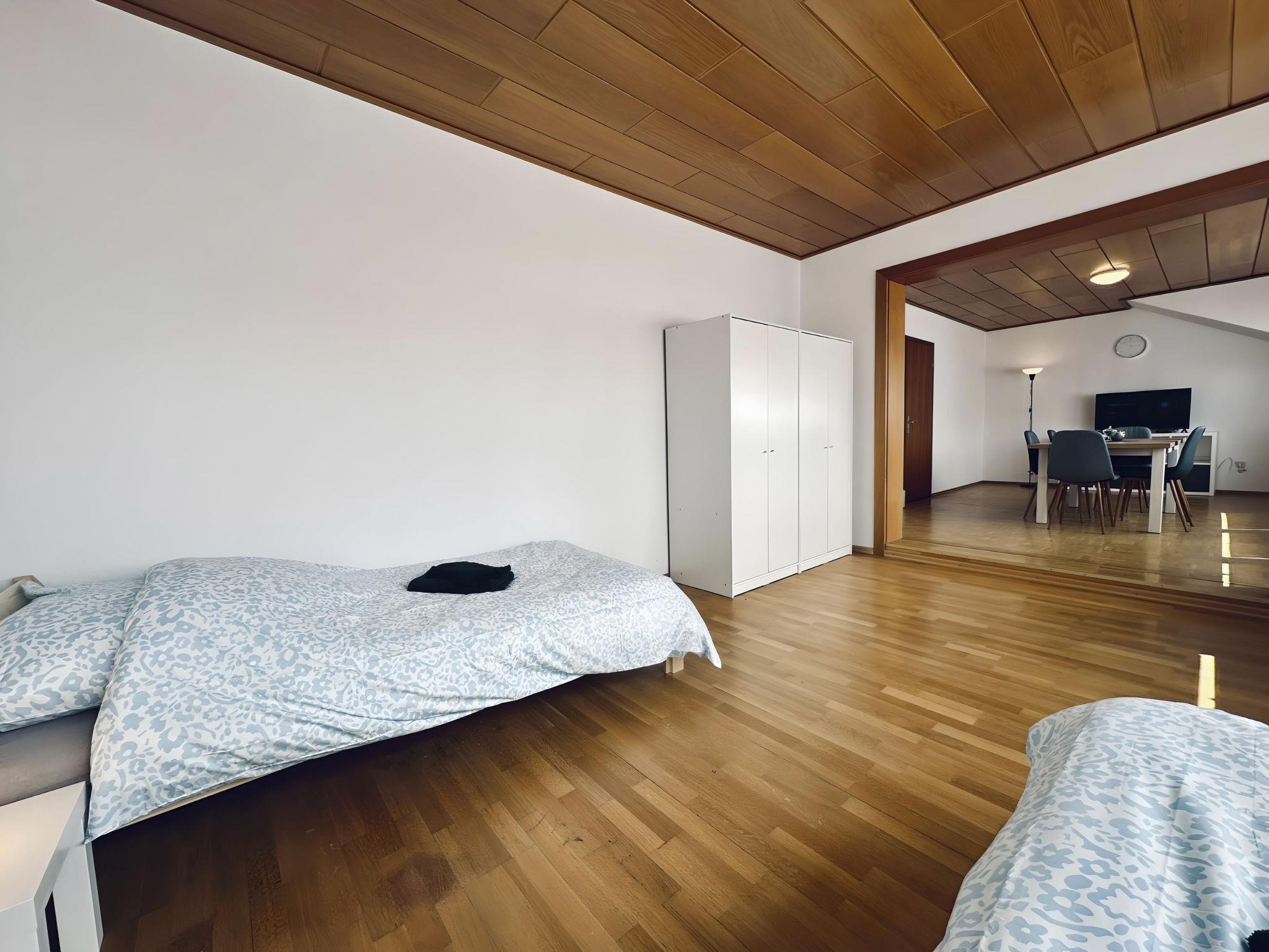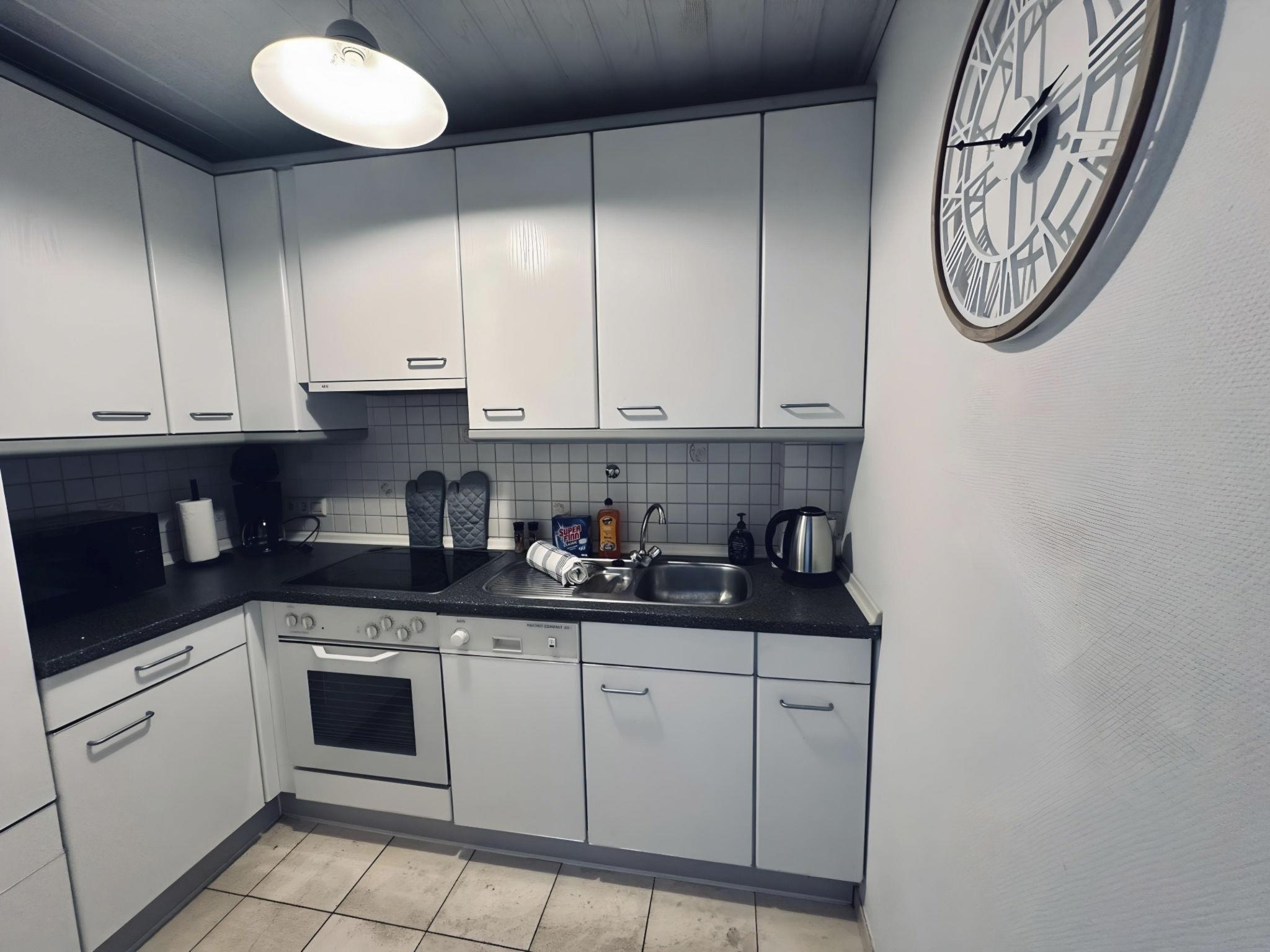 Inside, the flat offers around 90 m² of fully equipped furnishings that leave nothing to be desired. Two cosy bedrooms and a modern bathroom with shower and bathtub await you. The spacious living and dining area invites you to linger, while the kitchen is equipped with a two-ring hob, a filter coffee machine and a kettle. A smart TV provides entertainment and comfort, and there is a washing machine for communal use in the building.
