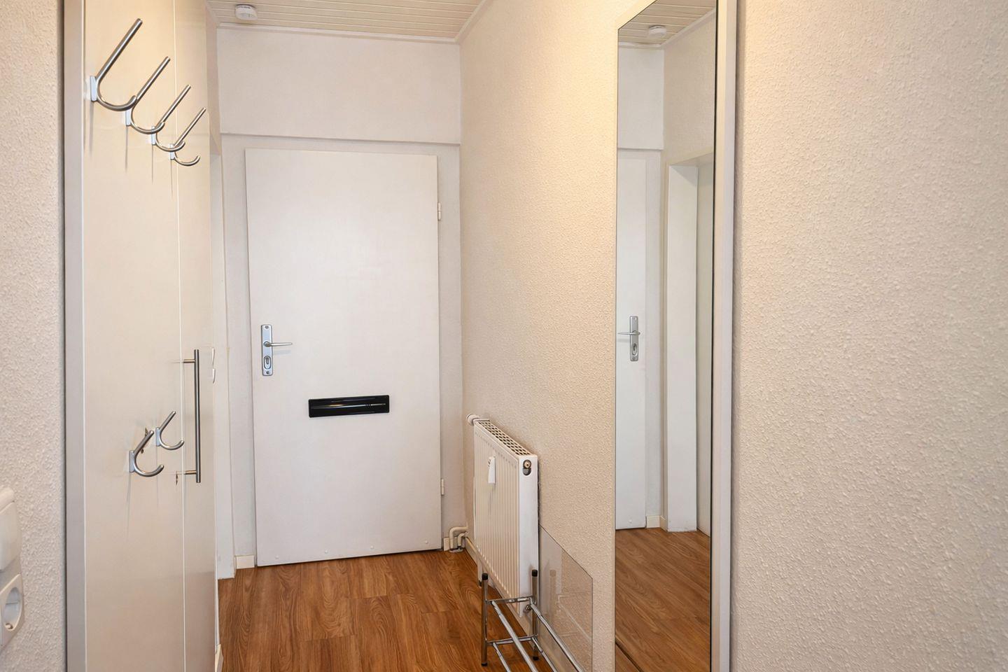 Das separate Schlafzimmer verfügt über ein bequemes Doppelbett und lässt sich mithilfe eines außenliegenden Rollos vollständig abdunkeln, sodass erholsame Nächte garantiert sind. Die kleine, aber hochwertig ausgestattete Küche fügt sich harmonisch in das Gesamtbild der Wohnung ein und bietet alles, was Sie für eine unkomplizierte Selbstversorgung benötigen. Ausgestattet ist sie mit einem Kühlschrank inklusive kleinem Gefrierfach, einem Zwei-Platten-Kochfeld, einem Backofen mit integrierter Mikrowelle sowie einer Geschirrspülmaschine. Das helle Tageslichtbad ist funktional gestaltet und verfügt über eine Dusche sowie ein WC.