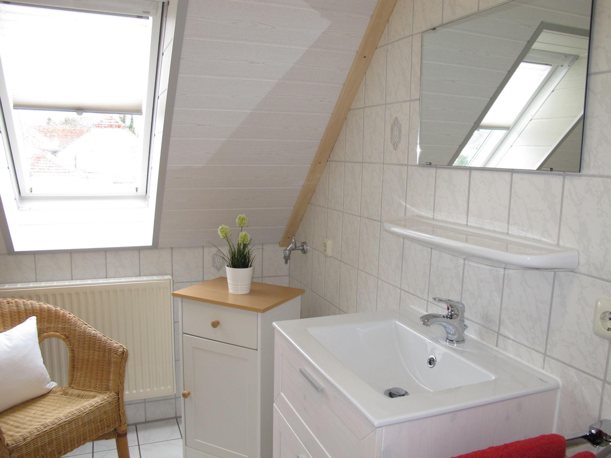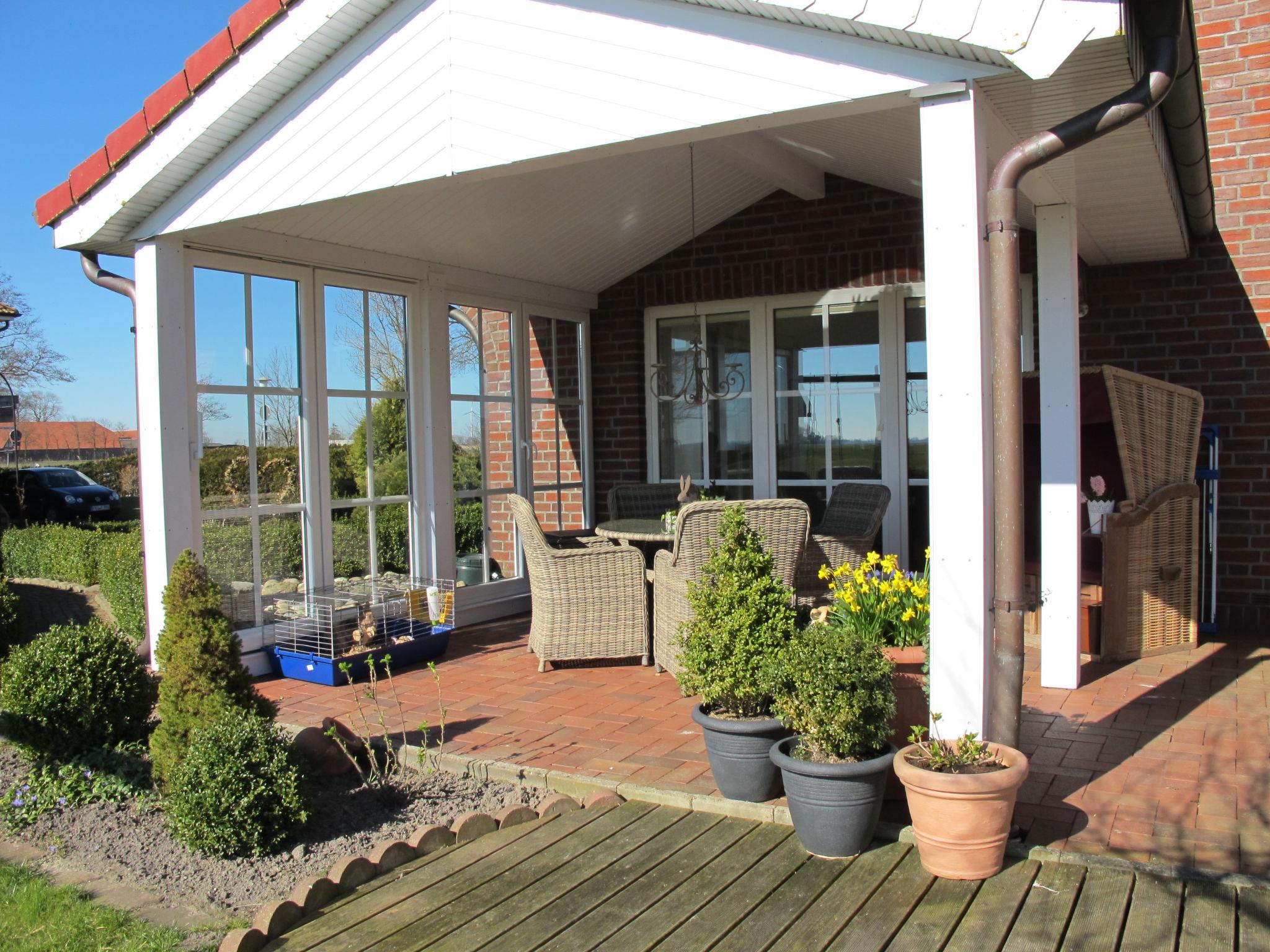 Wiarden 6 km from Horumersiel: 2-family house "Rosenboom". On the outskirts, 24 km from the centre of Wilhelmshaven, 6 km from the sea, 8 km from the lake. Private: property 700 m2 (fenced), well-kept garden with lawn and wildlife garden. Terrace, garden furniture, barbecue. In the house: storage room for bicycles, central heating system. Parking at the house. Supermarket 3 km, bus stop 100 m, railway station "Jever" 16 km, sandy beach "Hooksiel" 6 km, grass beach "Horumersiel" 6 km, outdoor swimming pool 6 km, indoor swimming pool 6 km. Marina 6 km. Storage room for bicycles is lockable.