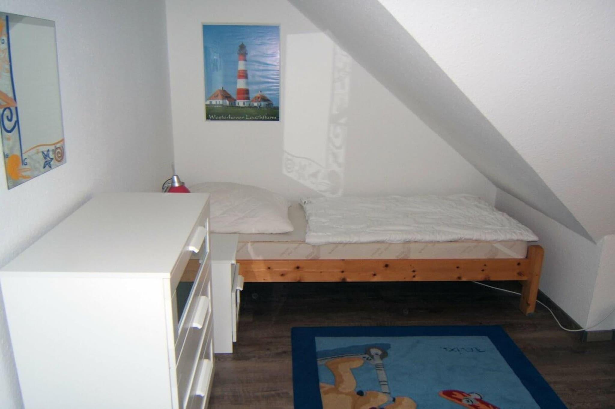 Die ruhig und zentral gelegen Ferienwohnung in der 2. Etage bietet seinen Gästen auf 70 m² Platz für einen erholsamen Urlaub. Auf zwei Ebenen finden bis zu 5 Personen Raum zur Entspannung. Ideal ist die Wohnung für Familien mir 2 Erwachsenen und bis zu 3 Kindern. Auf der unteren Ebene befindet sich der geräumige Wohnraum mit integrierter Küche und Essbereich, sowie das Elternschlafzimmer und das Bad. Auf der oberen Ebene befinden sich 3 Einzelbetten, sowie ein Kinderreisebett und viel Platz zum spielen. Die Wohnung liegt nahe des Ortskerns und ca. 10 Gehminuten zum Strand. 2 Balkone nach Süden und Westen ausgerichtet bieten Sonne den ganzen Tag und sind voll ausgestattet mit Gartenmöbeln.
