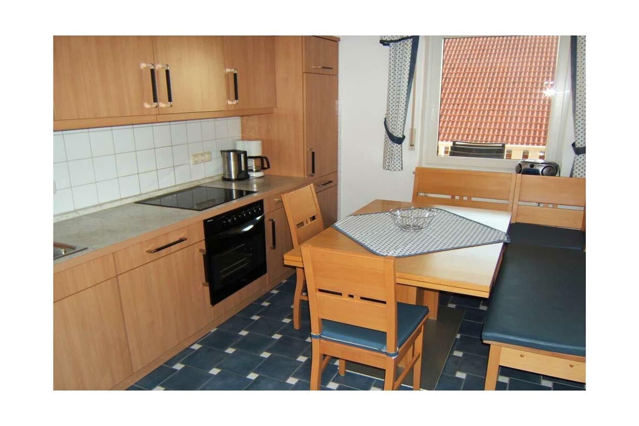 95 m² holiday apartment on the first floor of an apartment building, south-facing balcony, 3 bedrooms, 5 beds and a children's bed