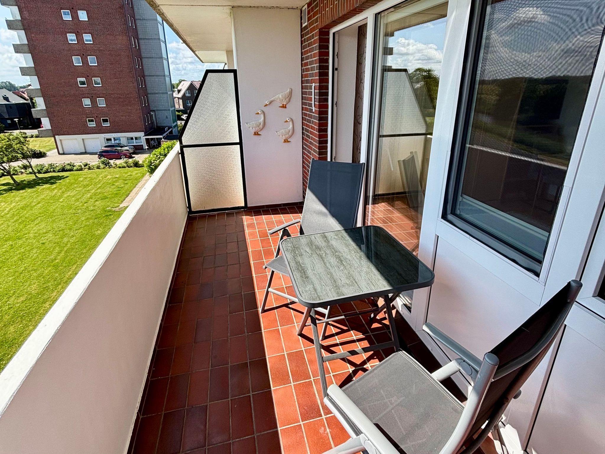 Genießen Sie Ihren Urlaub in der Ferienwohnung Meerblick ruhig gelegen in der 2. Etage eines gepflegten Hauses in Horumersiel, mit traumhaftem Ausblick auf das Meer vom eigenen Balkon. Die Wohnung ist bequem mit dem Fahrstuhl erreichbar und vollständig ebenerdig gestaltet ideal auch für Gäste mit eingeschränkter Mobilität.