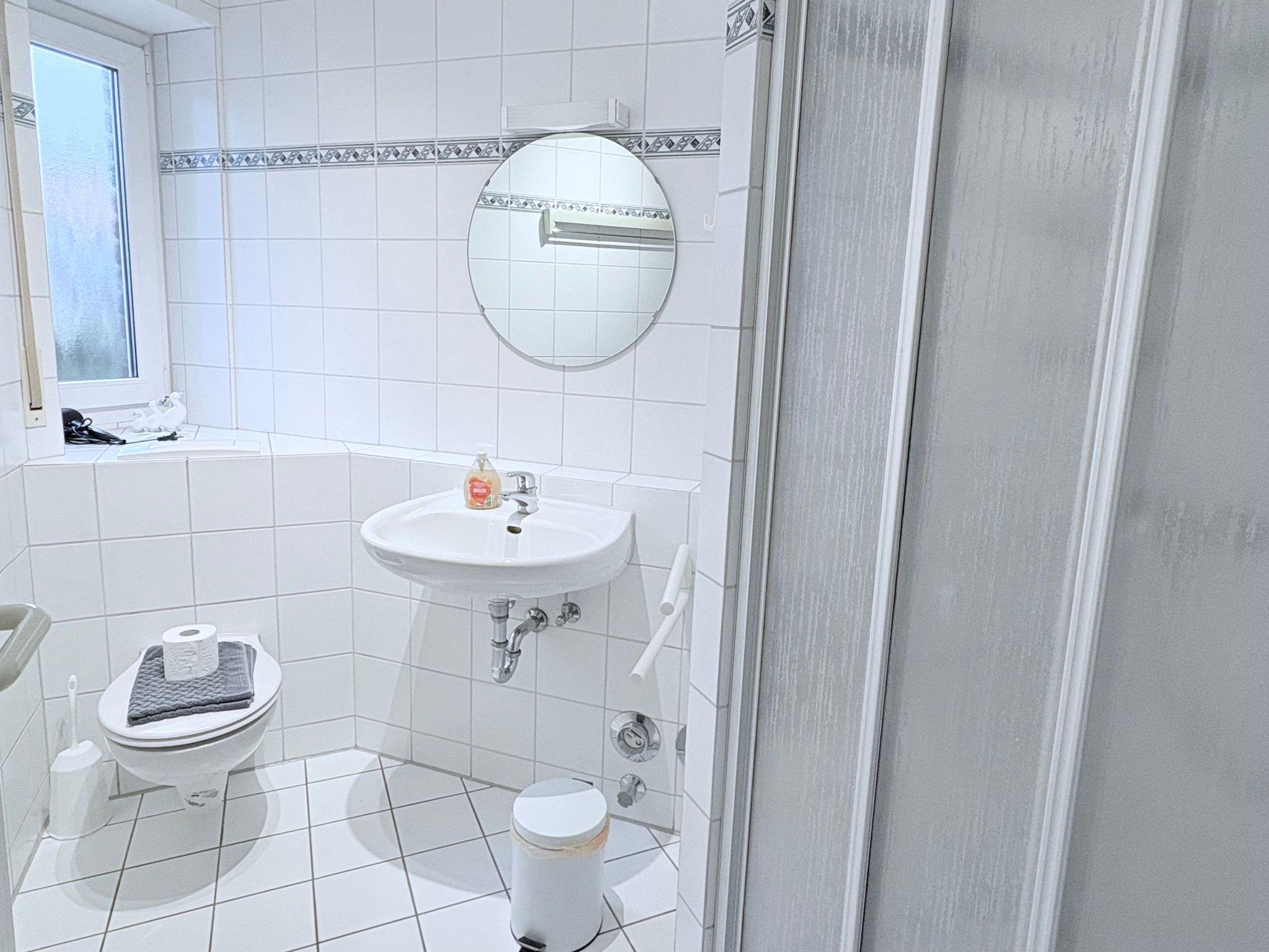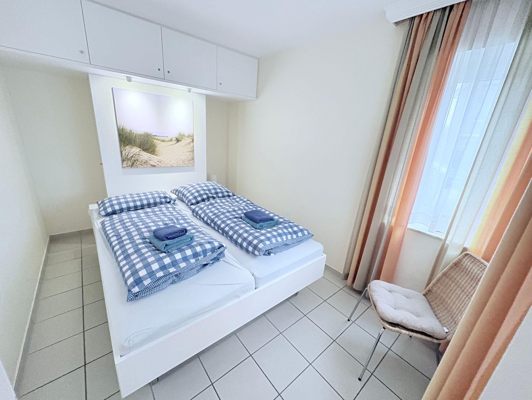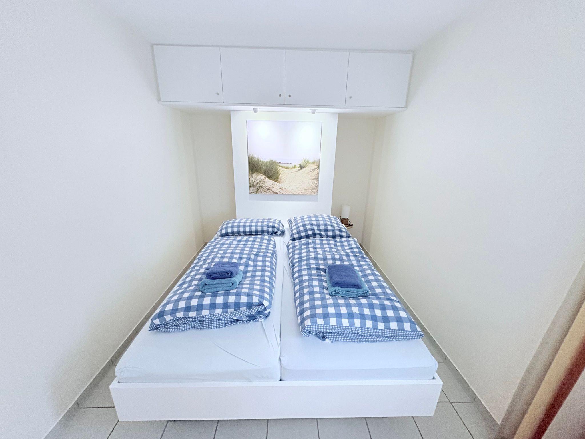 Im separaten Schlafzimmer mit Doppelbett finden Sie erholsame Nachtruhe. Das Badezimmer verfügt über Dusche und WC.