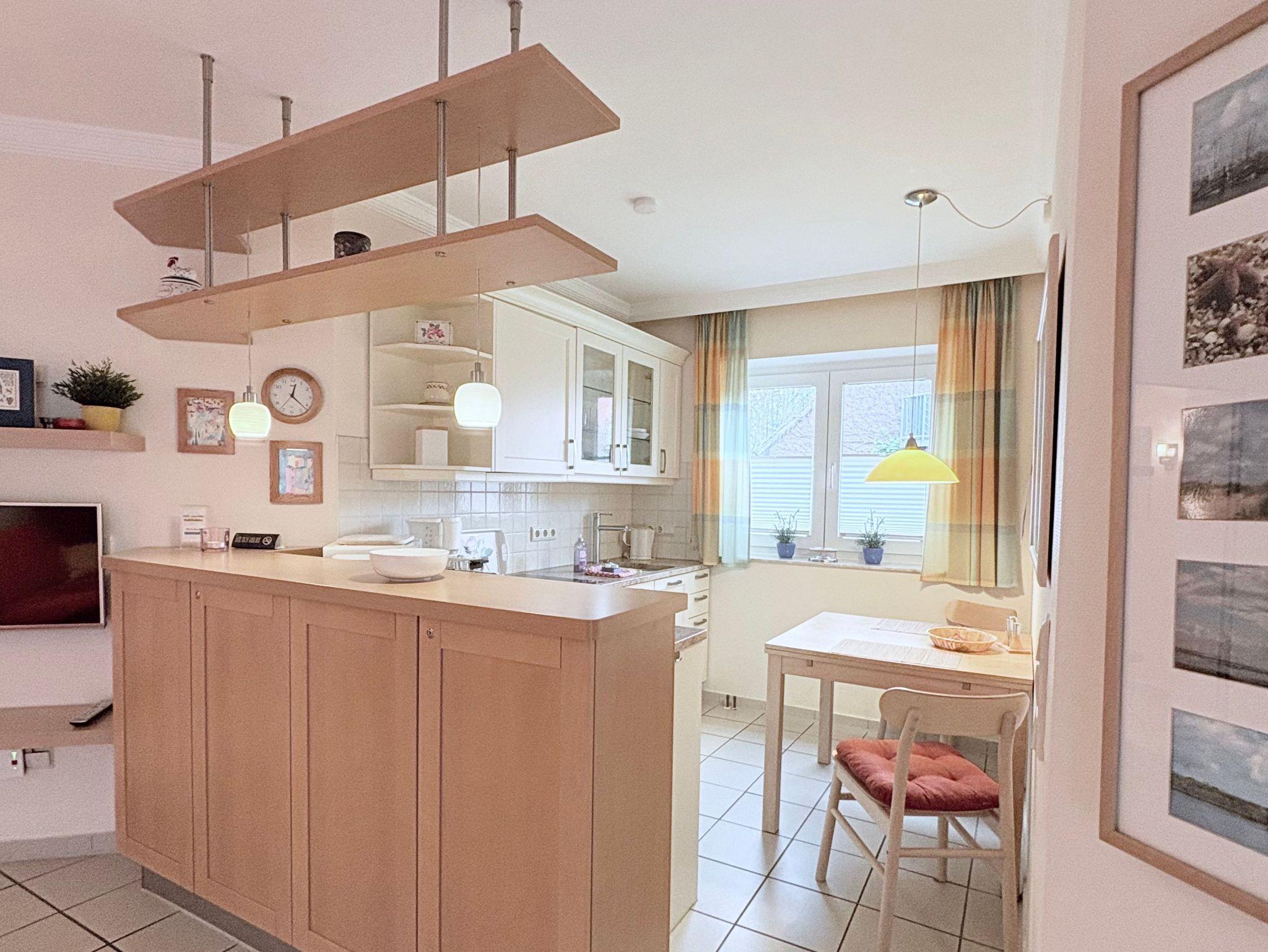 Genießen Sie Ihren Urlaub in dieser liebevoll eingerichteten Nichtraucherwohnung. Der offene Wohnbereich mit Einbauküche, Essplatz und gemütlicher Sitzecke lädt zum Wohlfühlen ein. Die moderne Küche ist mit Ceranfeld, Spülmaschine, Mikrowelle, Kaffeemaschine und Toaster bestens ausgestattet.