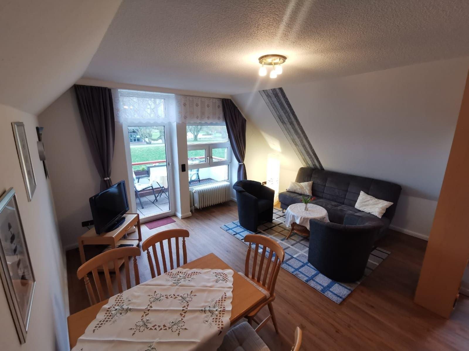Gemütliche Oberwohnung in absoluter Strandnähe ( ca. 100m ). Diese Ferienwohnung besteht aus einem Schlafzimmer mit Doppelbett, ein Tageslichtduschbad, kleiner Flur mit Garderobe, großer Wohnraum mit Durchgang zum Südbalkon, einem Essplatz für 4 Personen und angrenzender Einbauküche. Ein Fahrradabstellraum sowie ein PKW-Stellplatz sind direkt am Haus vorhanden.