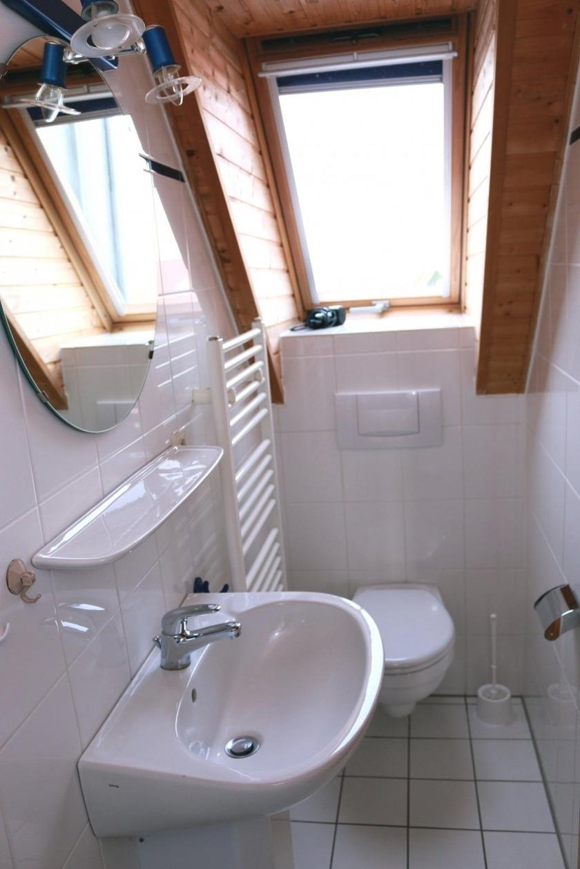Die Wohnung 12 befindet sich in der 2. Etage des Apartmenthauses im Strandweg 5 und bietet Platz für 4 Personen.Die Wohnung erstreckt sich über 2 Etagen. In der unteren Etage (2.OG) befindet sich ein Tageslicht-Badezimmer mit Dusche, WC Handtuchtrockner und einem Waschbecken. Ein Schlafzimmer mit 2 Einzelbetten.Die Küchenzeile ist mit Herd, Mikrowelle, Backofen, Kaffeemaschine, Kühl-Gefrierkombi, Spülmaschine und Waschmaschine ausgestattet. Der Esstisch bietet Platz für 4 Personen. Eine Couch Garnitur mit kleinem Beistelltisch, einem TV Gerät und einer Kommode runden den Wohn-Essbereich gemütlich ab. Von hier aus gelangen Sie sowohl auf den Balkon, als auch in die obere Etage. Hier befindet sich ein weiteres Doppelbett.