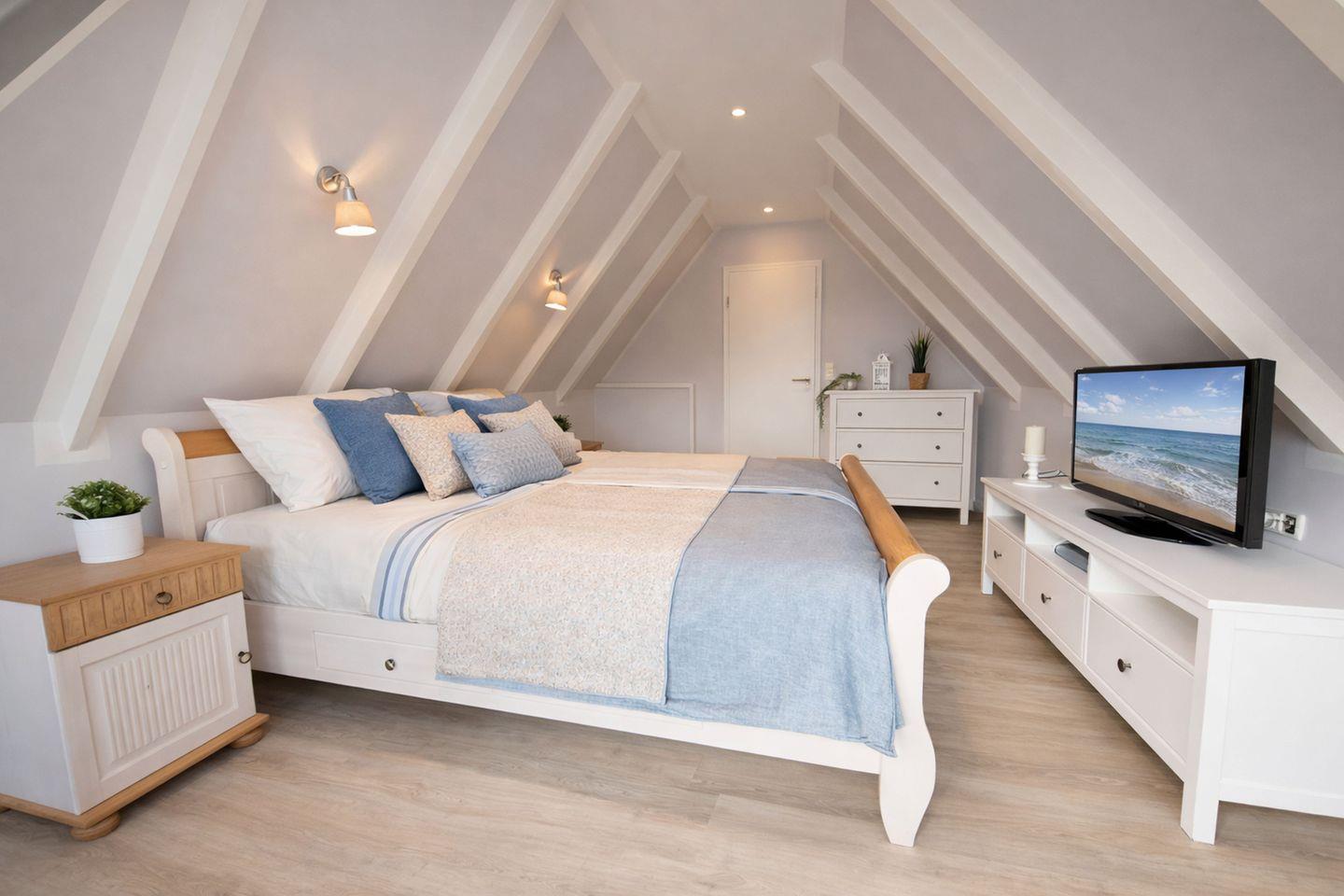 Auf großzügigen 79 Quadratmetern bietet das liebevoll eingerichtete Ferienhaus Platz für bis zu sechs Personen und ist damit ideal für Familien, Freunde oder Paare, die gemeinsam entspannte Tage am Meer verbringen möchten. Drei gemütliche Schlafzimmer sorgen für erholsamen Schlaf, wobei sich ein Schlafzimmer mit Etagenbett praktischerweise im Erdgeschoss befindet. In der ersten Etage erwarten Sie zwei weitere Schlafzimmer mit komfortablen Doppelbetten sowie ein zusätzliches Gäste-WC.