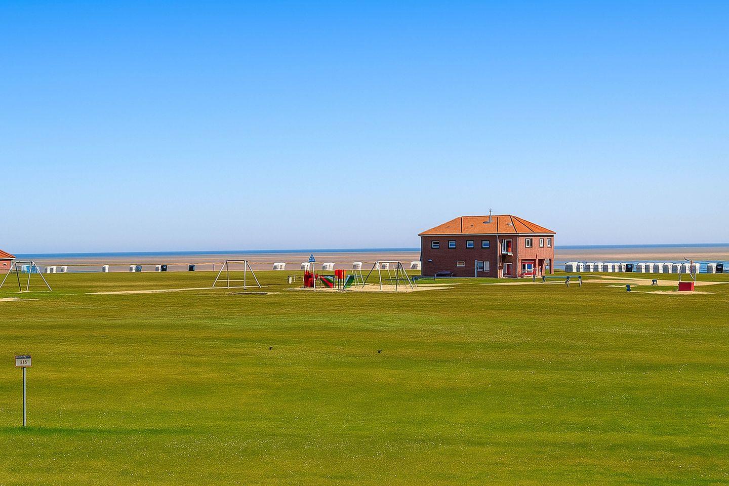 Vom Wohnbereich aus gelangen Sie direkt auf die Terrasse und in den angrenzenden Garten, wo Sie die frische Nordseeluft genießen und entspannte Stunden im Freien verbringen können. Ein Kinderreisebett sowie ein Hochstuhl stehen kostenfrei zur Verfügung und machen die Wohnung besonders familienfreundlich. Das helle Tageslichtbad ist mit einer befahrbaren Dusche und einem WC ausgestattet und sorgt für zusätzlichen Komfort sowie uneingeschränkte Bewegungsfreiheit.