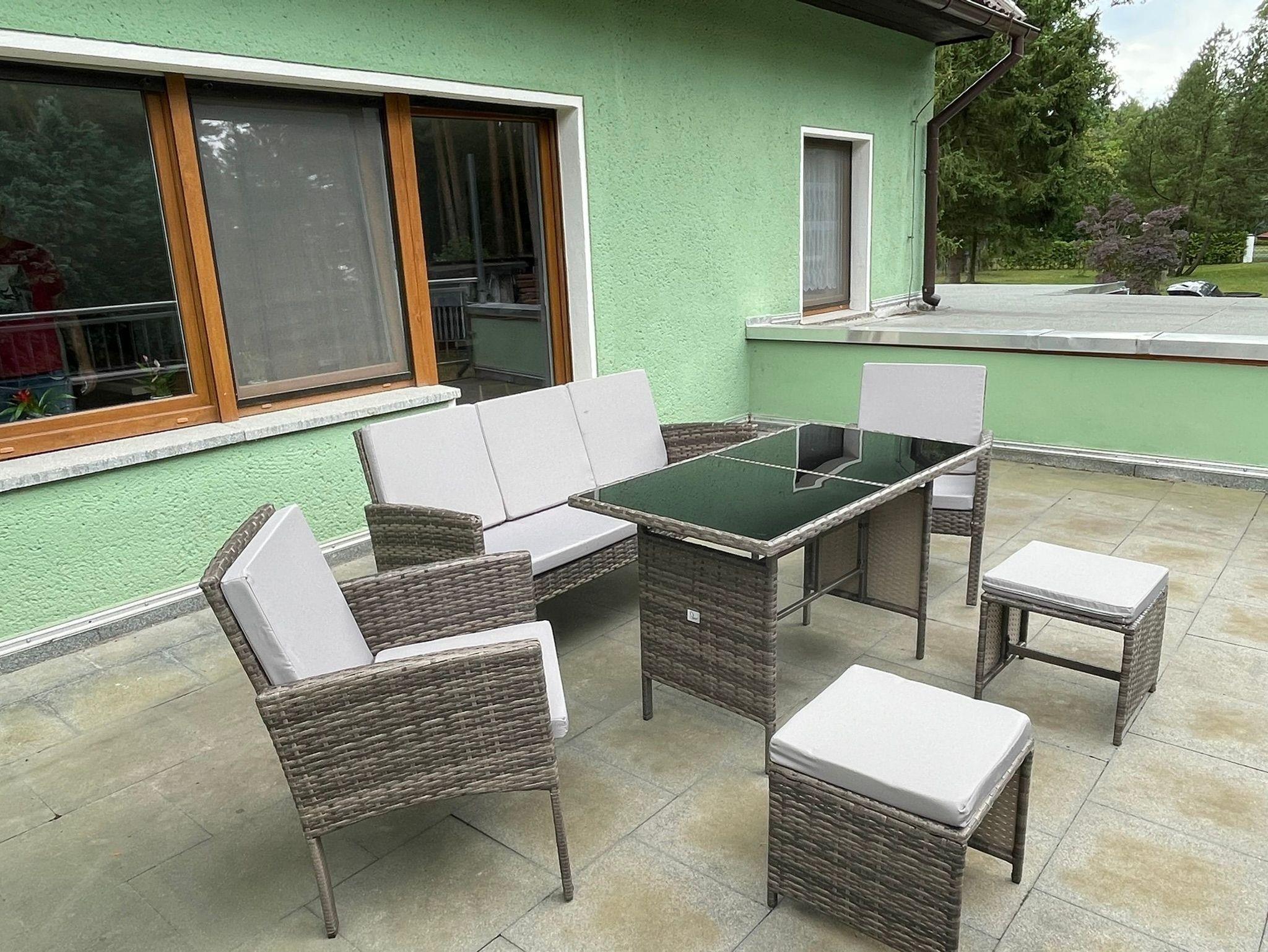 Es verfügt über umzäunten Garten mit einer gemütlichen Sitzecke auf der Terrasse, welche zum Entspannen und Genießen der ruhigen Umgebung einlädt. Zudem steht den Gästen im Keller eine Sauna zur Verfügung.