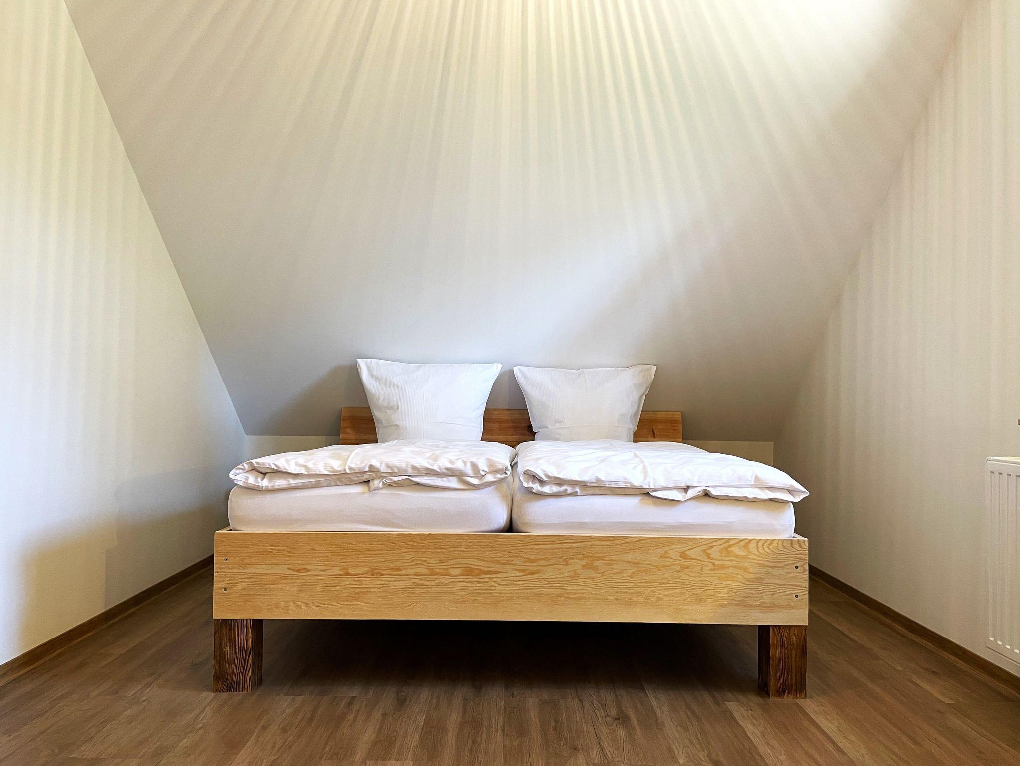 Jedes Haus verfügt über einen behaglichen Wohnbereich mit Kamin, der eine warme und einladende Atmosphäre schafft. Die handgefertigten Betten versprechen einen geruhsamen Schlaf und bieten jedem Gast die Möglichkeit, sich vom Alltag zu erholen.