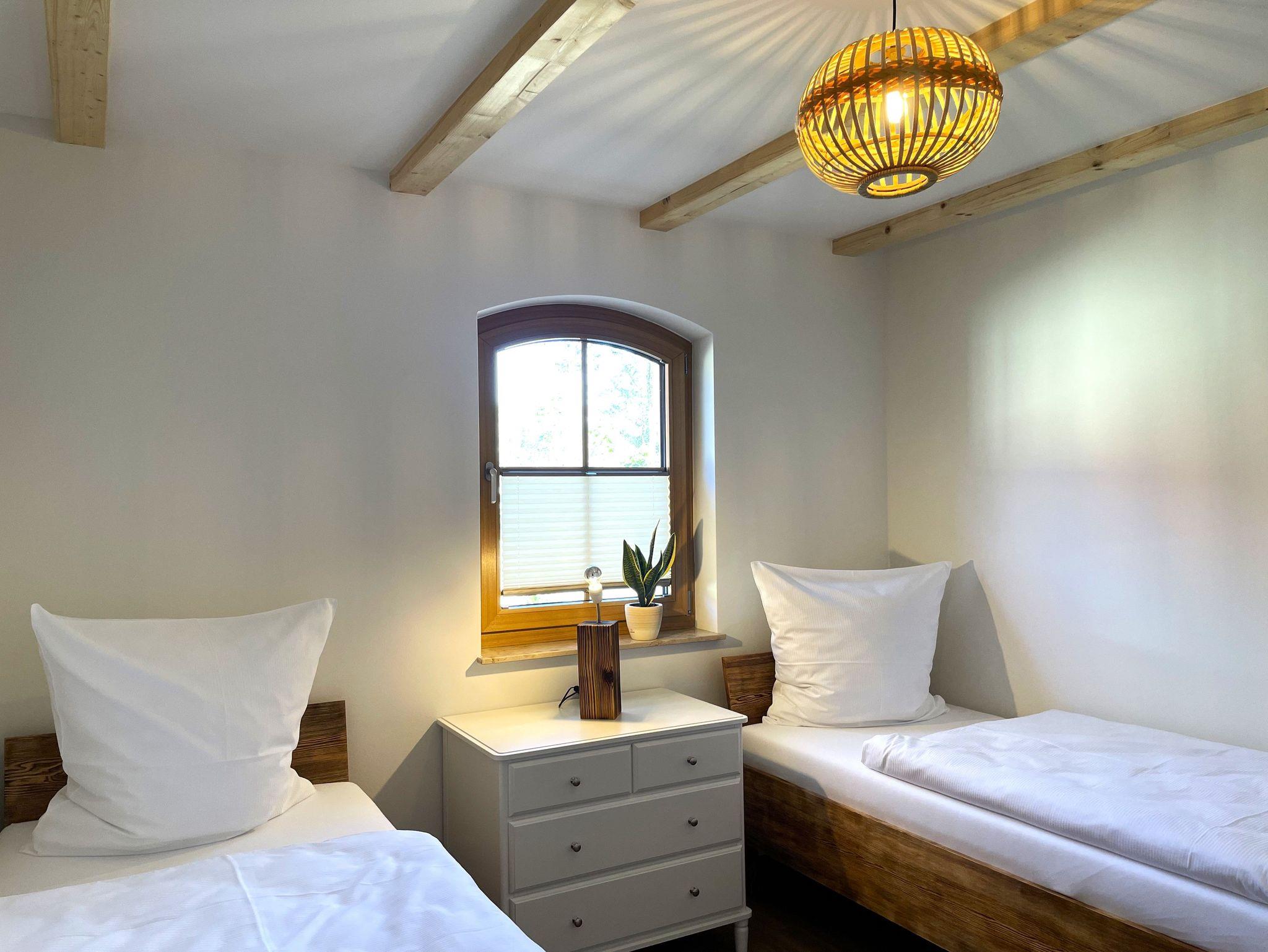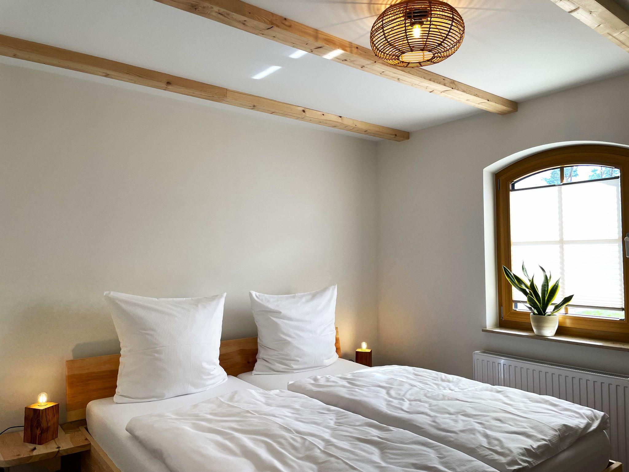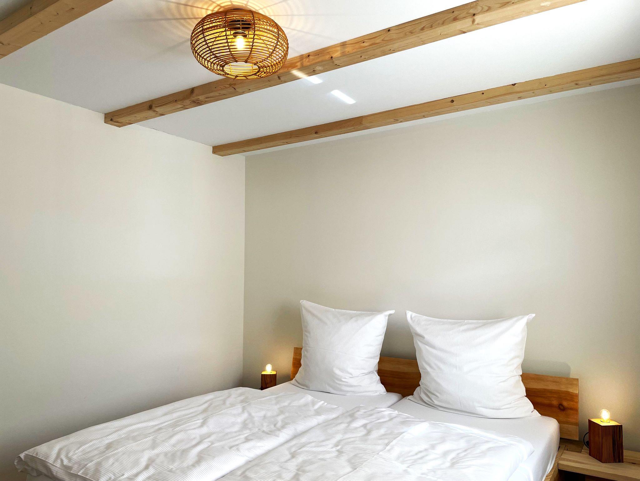 Das Ferienhaus verfügt über 2 Schlafzimmer, die mit handgefertigten Doppelbetten oder getrennten Einzelbetten überzeugen. Die Betten sind mit Bettwäsche bezogen und garantieren einen erholsamen Schlaf.