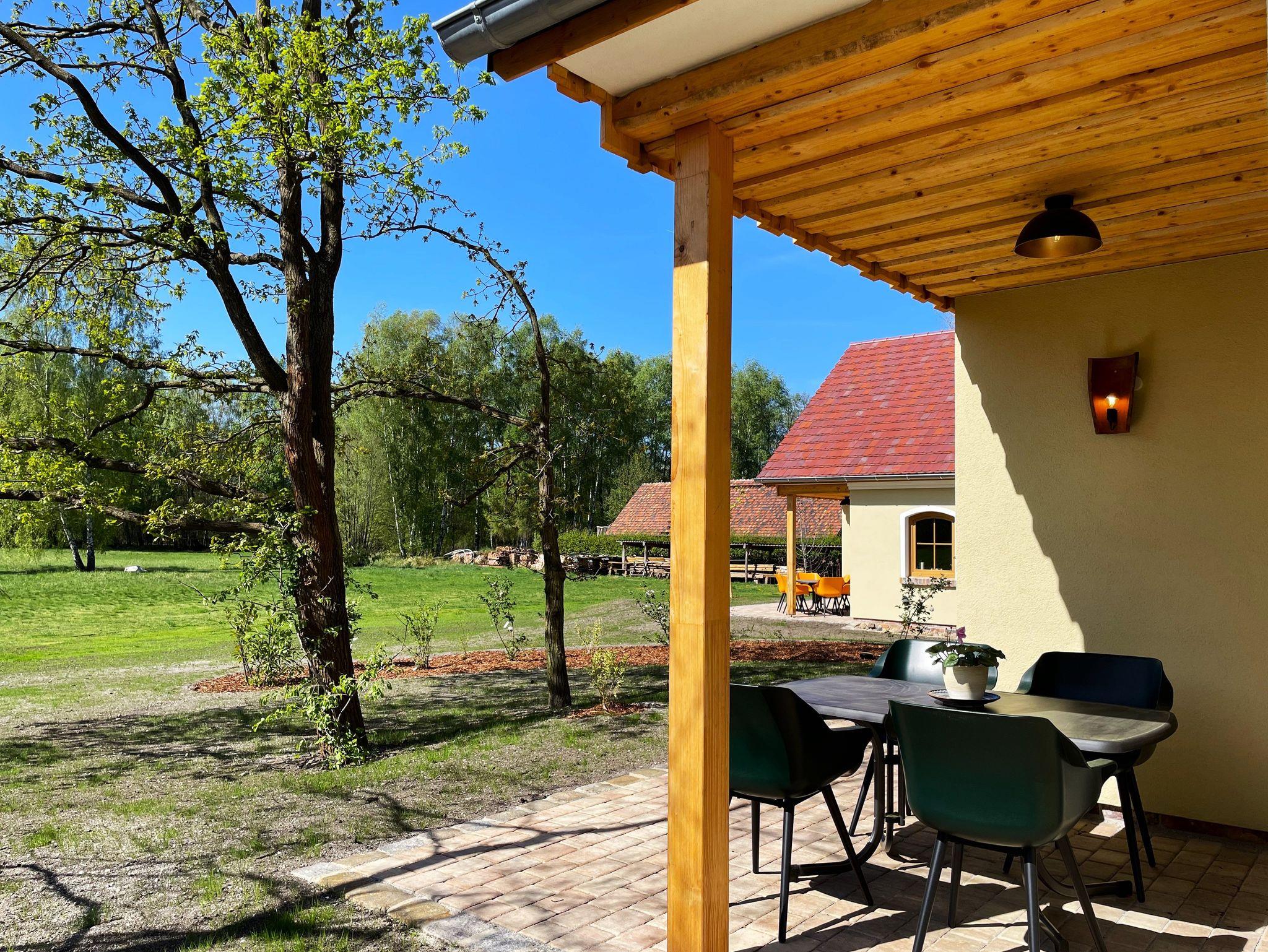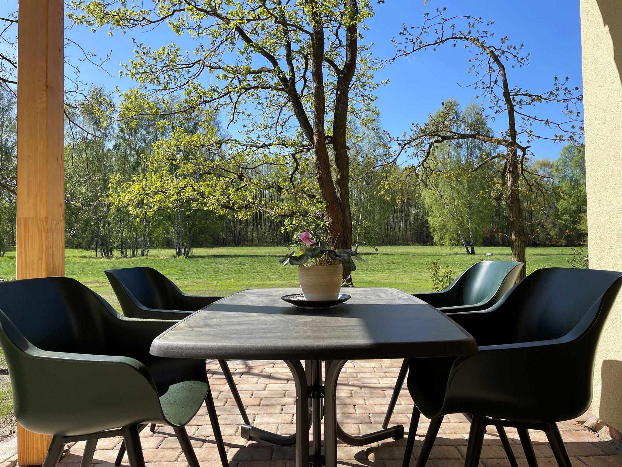 Das Ferienhaus bietet auch einen direkten Zugang zur Terrasse, die mit Terrassenmöbeln ausgestattet ist. Hier können Sie die frische Luft genießen, im Freien essen oder einfach nur entspannen. Die Terrasse ist ein idealer Ort, um die Liebe zur Heimat zu spüren und die ländliche Ruhe zu genießen.