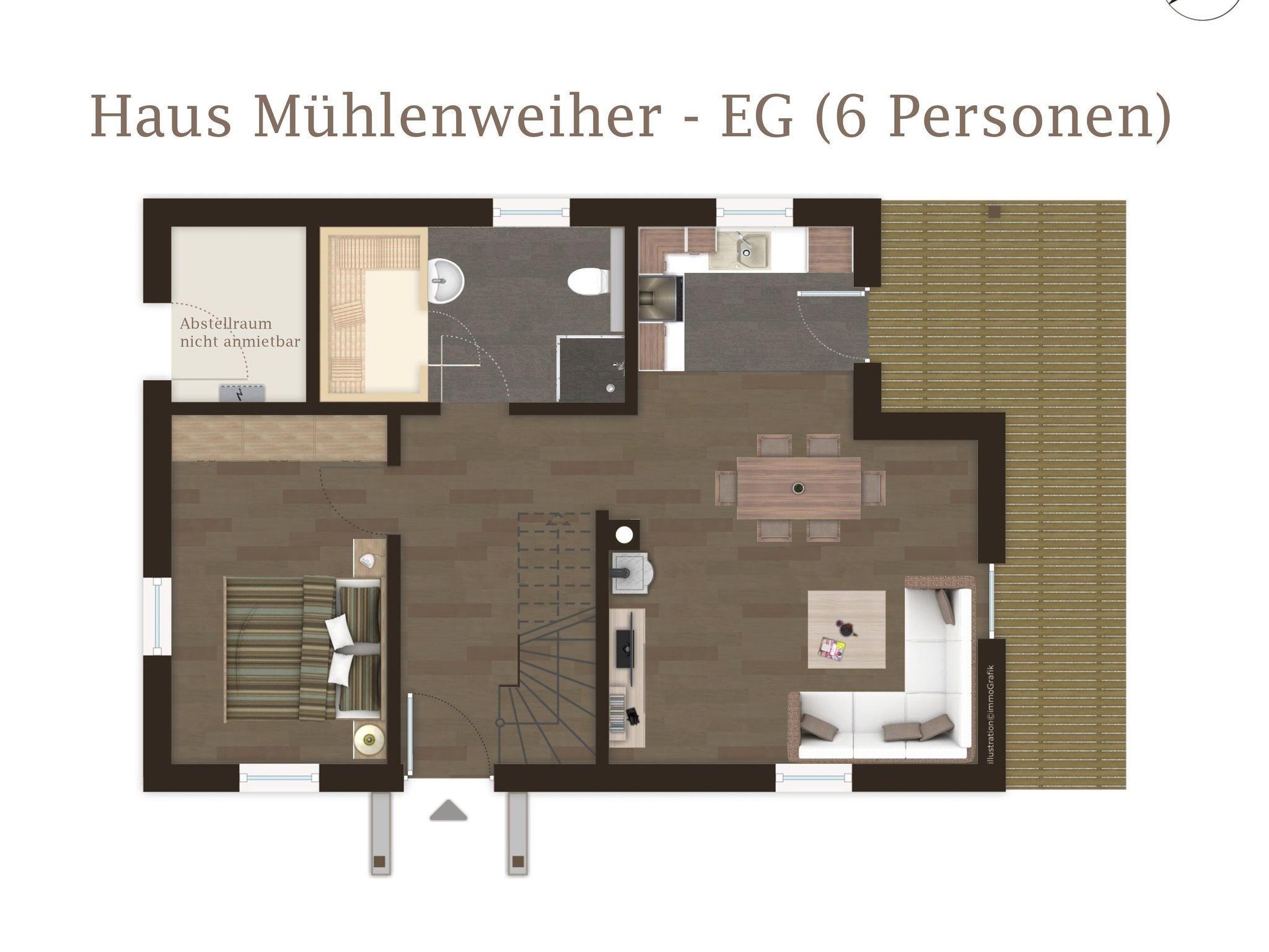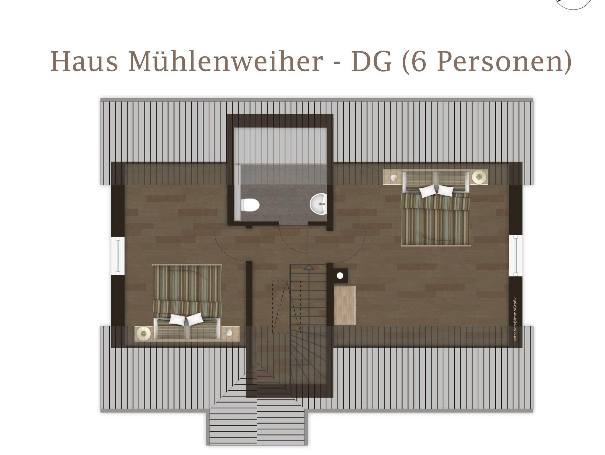 Das Ferienhaus “Mühlenweiher” ist ein idyllisches Refugium, perfekt für diejenigen, die eine friedliche Pause vom Alltag suchen. Mit Platz für bis zu sechs Personen bietet es eine liebevoll gestaltete Unterkunft, die die Vorfreude auf den Urlaub weckt.