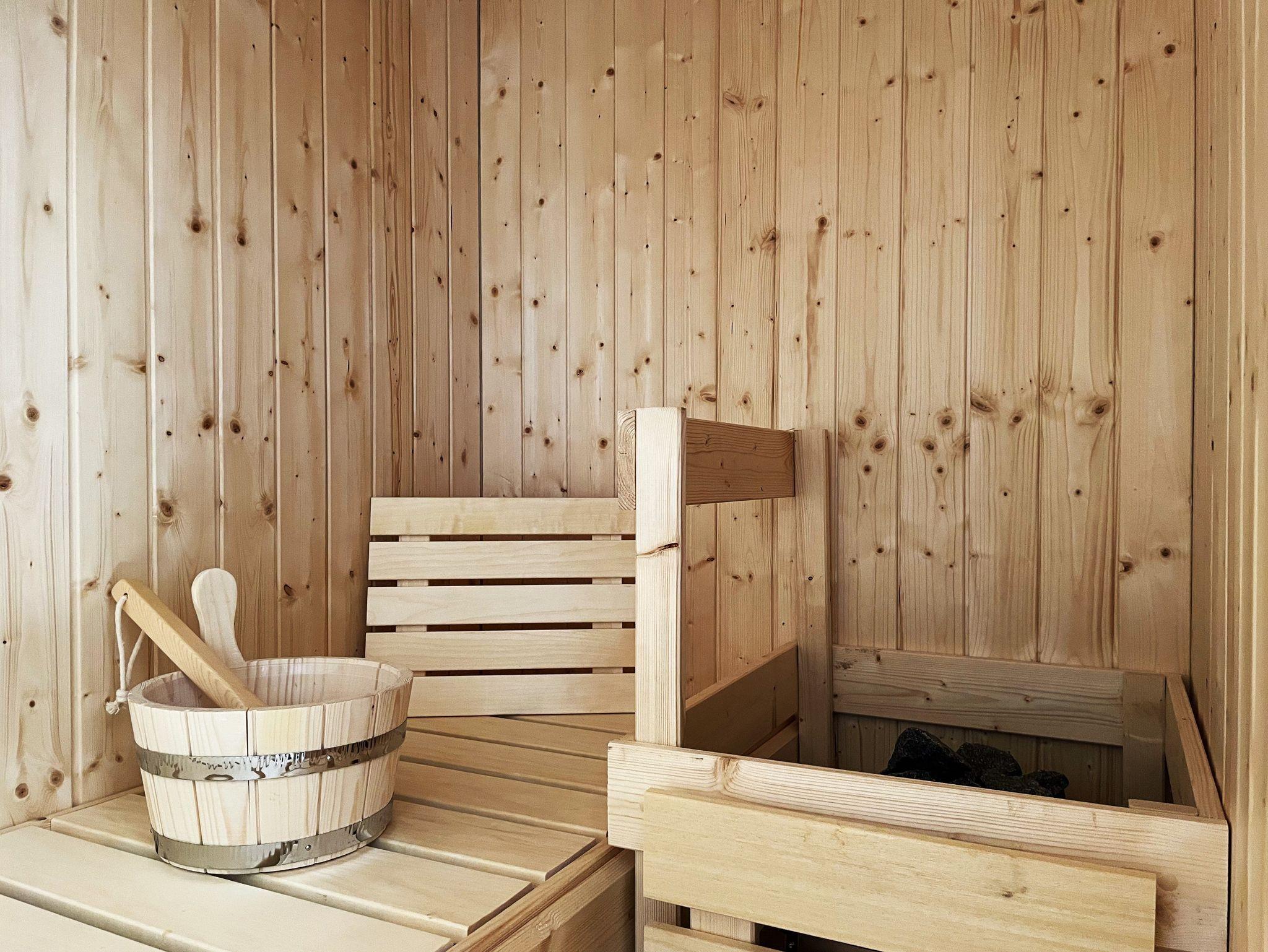 Ein besonderes Highlight ist der Kamin, der zu jeder Jahreszeit für Gemütlichkeit und wohlige Wärme sorgt. Im Erdgeschoss befindet sich ein Schlafzimmer mit einem Doppelbett und einem Kleiderschrank. Ebenfalls im Erdgeschoss befindet sich ein Badezimmer mit ebenerdiger Dusche, Waschtisch und WC. Eine integrierte Sauna bietet zusätzlichen Komfort.