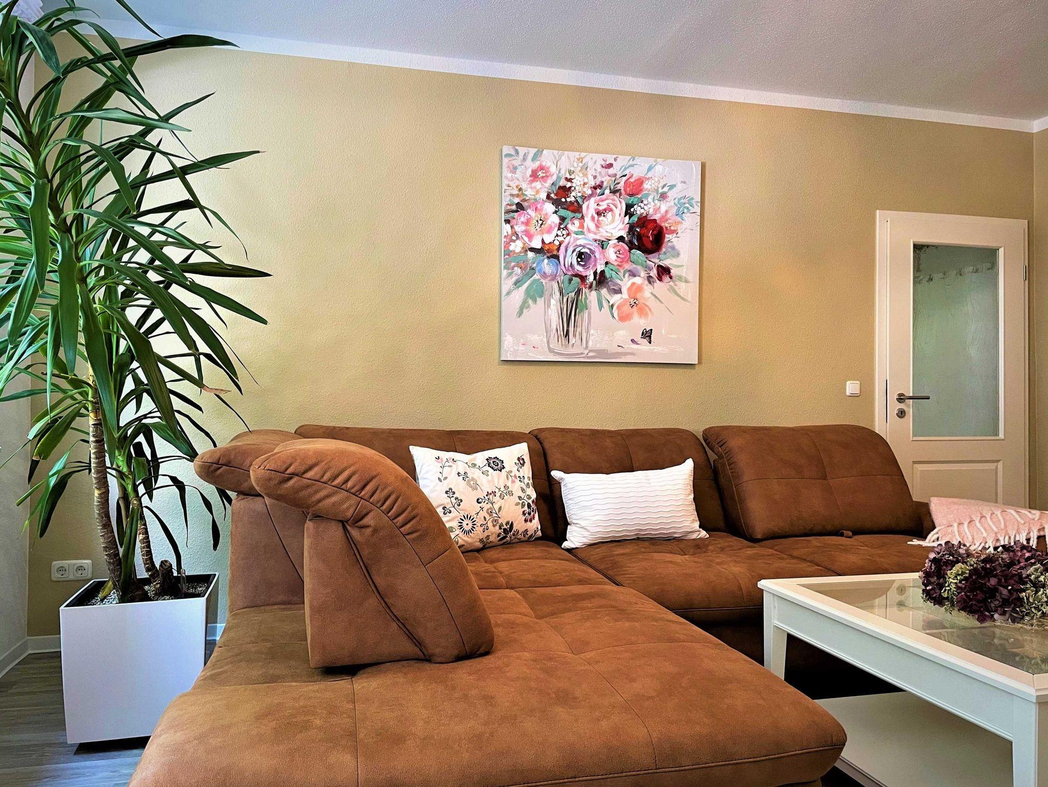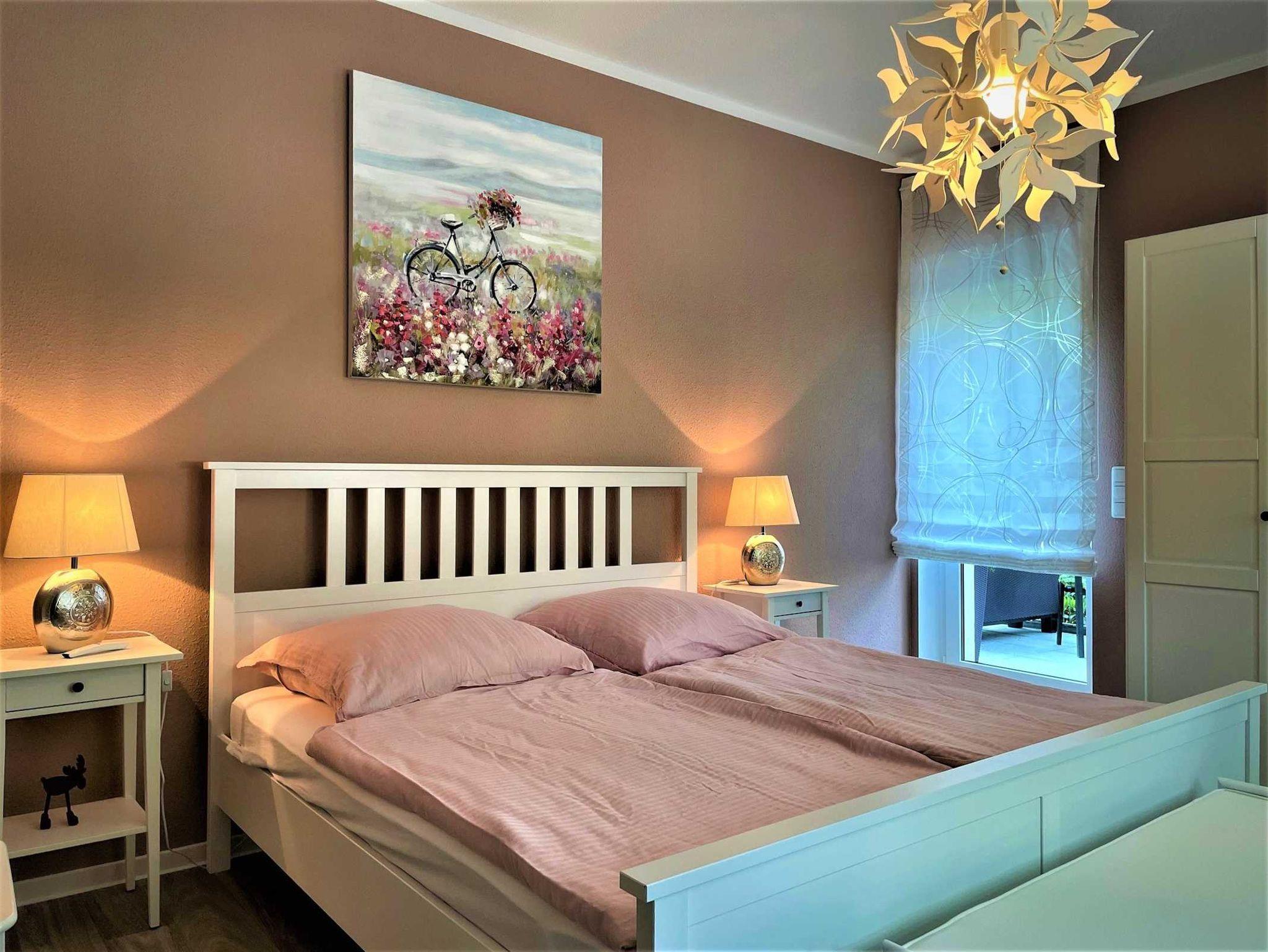 Die geschmackvoll eingerichtete Ferienwohnung besticht mit harmonisch aufeinander abgestimmten Farben. Das Wohnzimmer besitzt ein großes gemütliches Ecksofa sowie ein großen TV-Flachbildschirm. Im Schlafzimmer steht Gästen ein Doppelbett und ein zusätzlicher Fernseher zur Verfügung. Die helle separate Küche ist voll ausgestattet mit vielen Annehmlichkeiten, die den Aufenthalt sehr erleichtern. Im hellen Badezimmer finden Gäste eine Dusche sowie eine Badewanne vor. Weiterhin gibt es einen kleinen Balkon, der mit Balkonmöbeln ausgestattet ist und der an warmen Sommerabenden zum Verweilen einlädt.