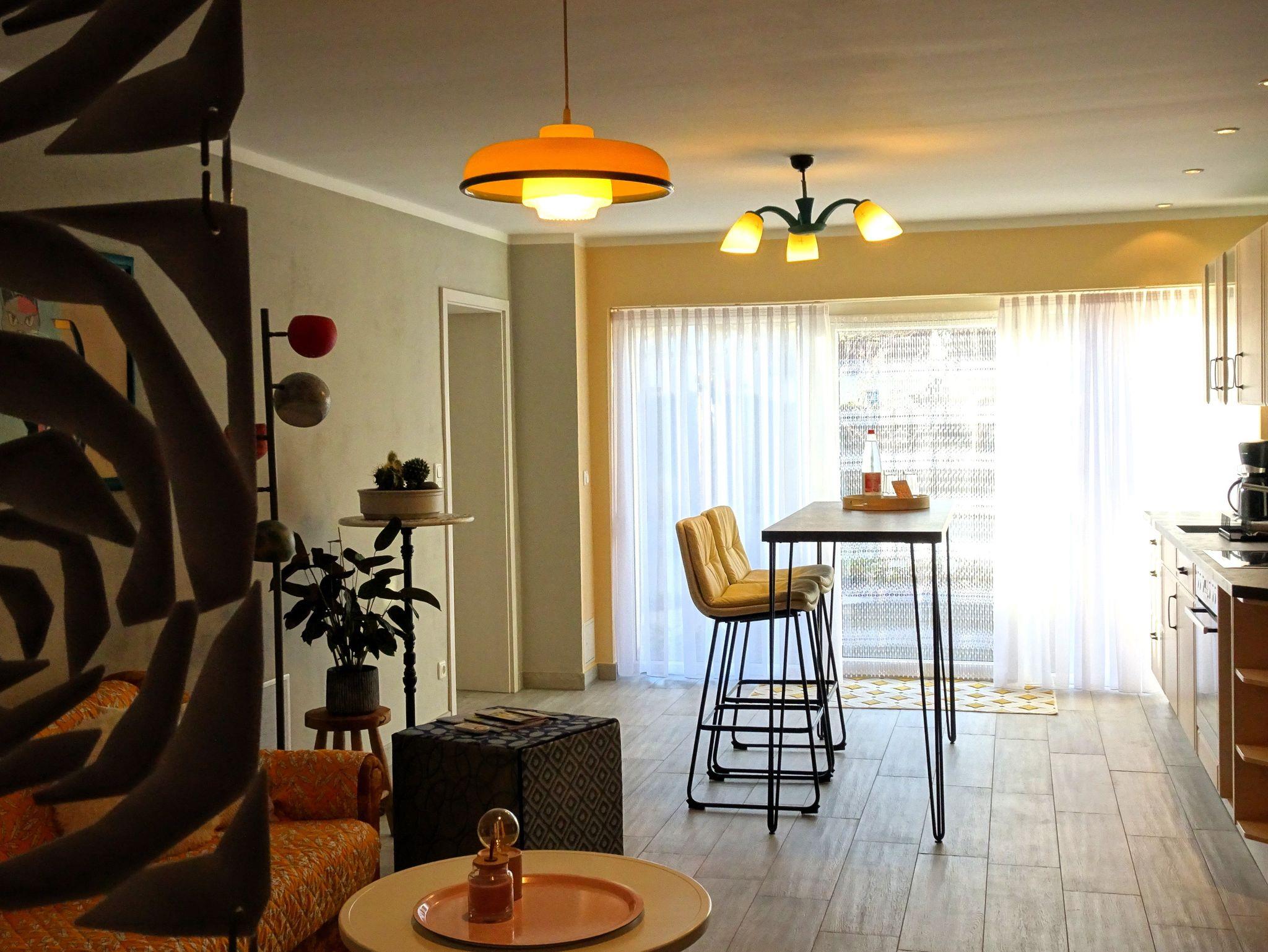 Unser gemütliches Appartement, ideal für 1-2 Personen, verbindet Retro-Flair mit modernem Komfort. Jedes Detail wurde liebevoll gestaltet, um Erinnerungen zu wecken und Ihnen ein gemütliches Zuhause zu bieten.