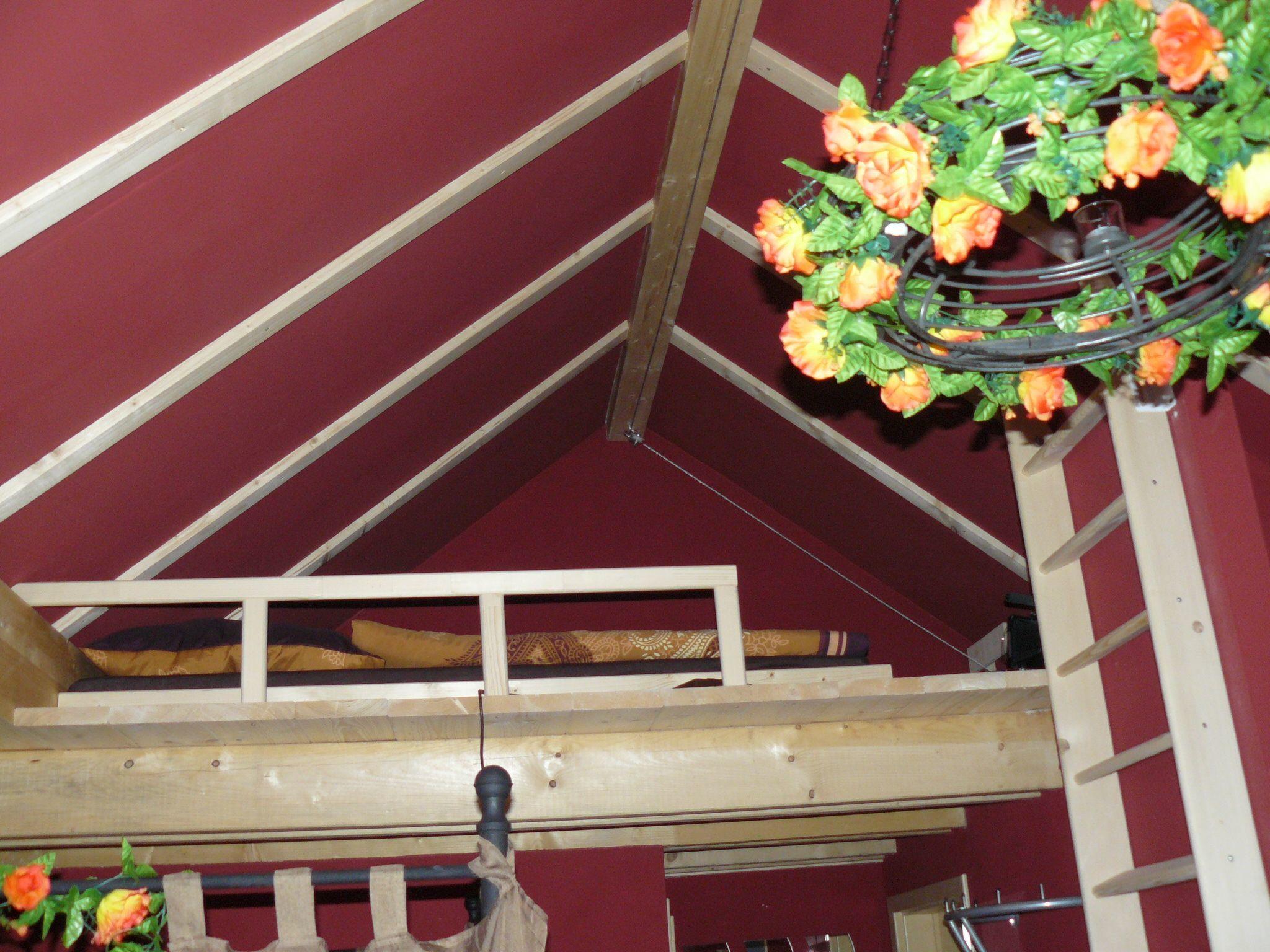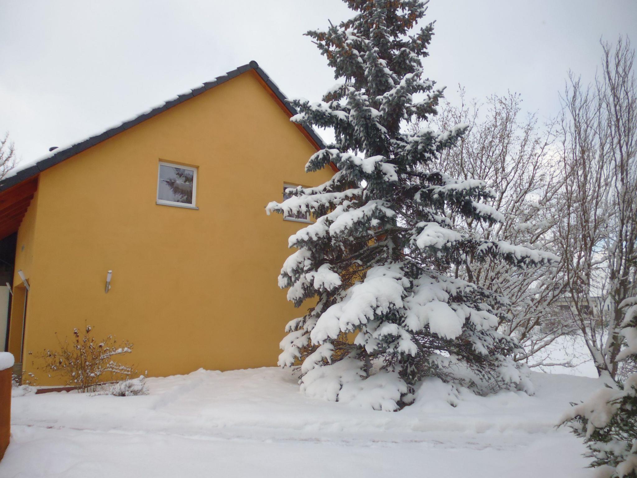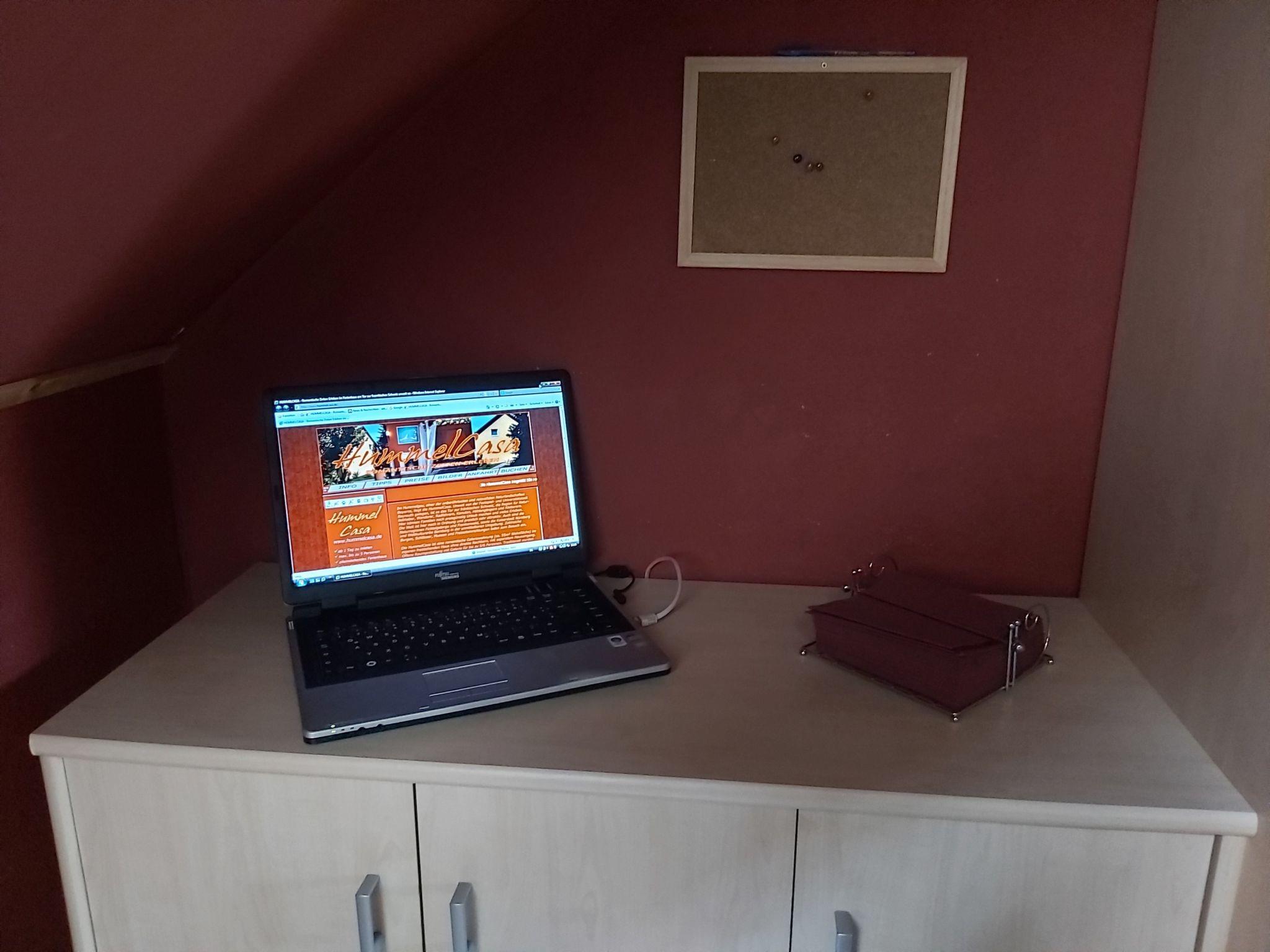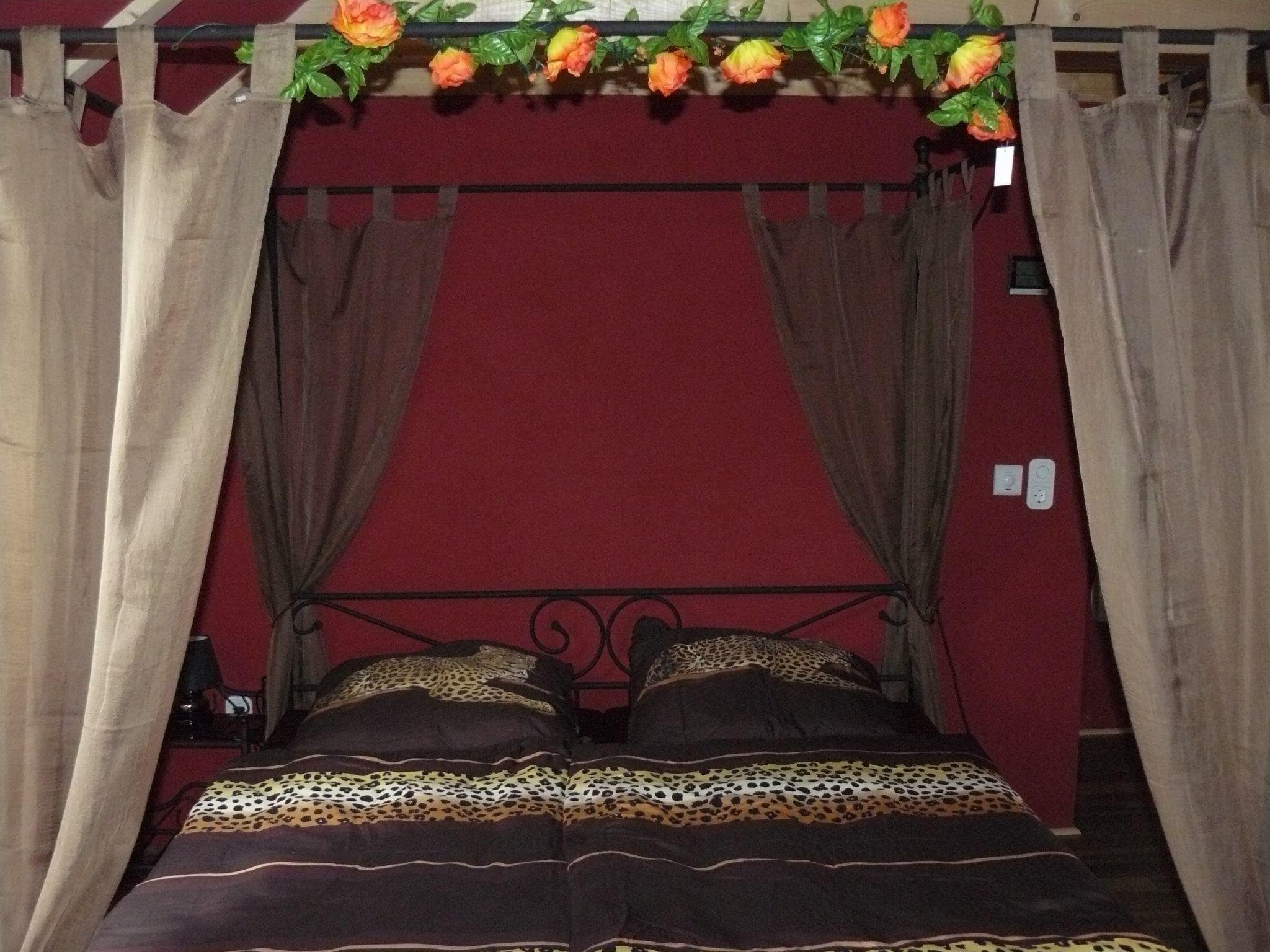 This holiday home is a romantic gallery flat, approx. 55m² living space, in its own detached house, without direct neighbours, with a separate entrance. The house was newly built in 2013 according to the latest energy-efficient standards / allergy guidelines. It offers a tasteful, upscale interior design in the living room, kitchen, bathroom and gallery. In addition to conventional heating, underfloor heating, a fireplace and infrared heating, the gallery flat naturally also has a hot water connection. The open-plan layout, with gallery, is suitable for up to four people. On the ground floor there is a garage and storage space for bicycles, while the living areas are located on the first and second floors. The walls are a traditional Franconian red colour, interspersed with natural wood from the region. The open-plan living and sleeping area on the first floor offers seating with a sofa bed, 1.40 x 2.00 m, fireplace, O2 TV streaming with Alexxa control, DVD player, laptop with high-speed Internet connection/WLAN and stereo music system. The kitchenette is equipped with a dining area, a hot-air electric cooker with grill function, a ceramic hob, a microwave, a fridge and a breakfast centre. The kitchen equipment and the dining area are designed for six people. In the living room there is a four-poster bed, 1.80 x 2.00 metres. In the gallery there is a further sleeping area, 1.80 x 2.00 m, which can be reached via a ladder in the open-plan layout. The living and sleeping area of the gallery flat can be air-conditioned. The heated bathroom is equipped with an XL shower, toilet and washbasin, as well as an eco washing machine. The floor is of course tiled. Bed linen and towels are provided. This is a house where smoking is not permitted. Enjoy the romantic atmosphere of this unique holiday home.