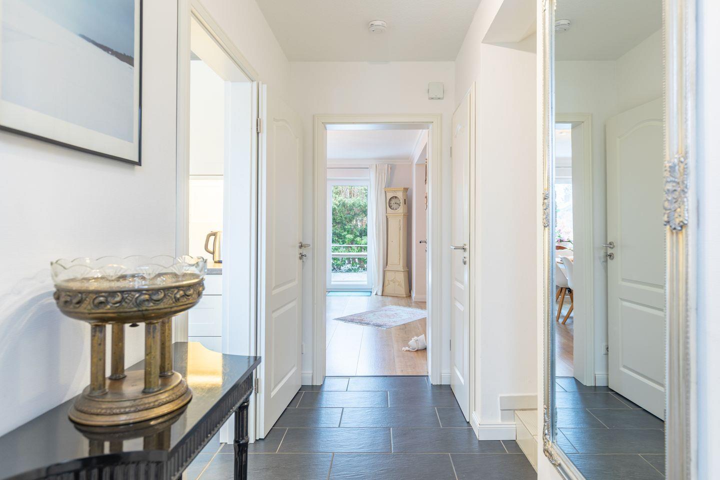 Im Inneren erwarten Sie sechs Räume mit klar gegliederten Wohn- und Essbereichen. Wohnzimmer, Esszimmer und eine separate Sofaecke laden zum Entspannen ein. Zur Unterhaltung stehen Ihnen ein SMART- TV im Wohnzimmer, Radio, CD-Spieler, HiFi-Anlage sowie WLAN zur Verfügung. Bücher und Spiele ergänzen das Angebot. Praktische Ausstattungsdetails wie Garderobe, Schreibtisch, Sessel, Kommode, Wäscheständer, Staubsauger sowie Bügeleisen und -brett sorgen für Komfort im Alltag.