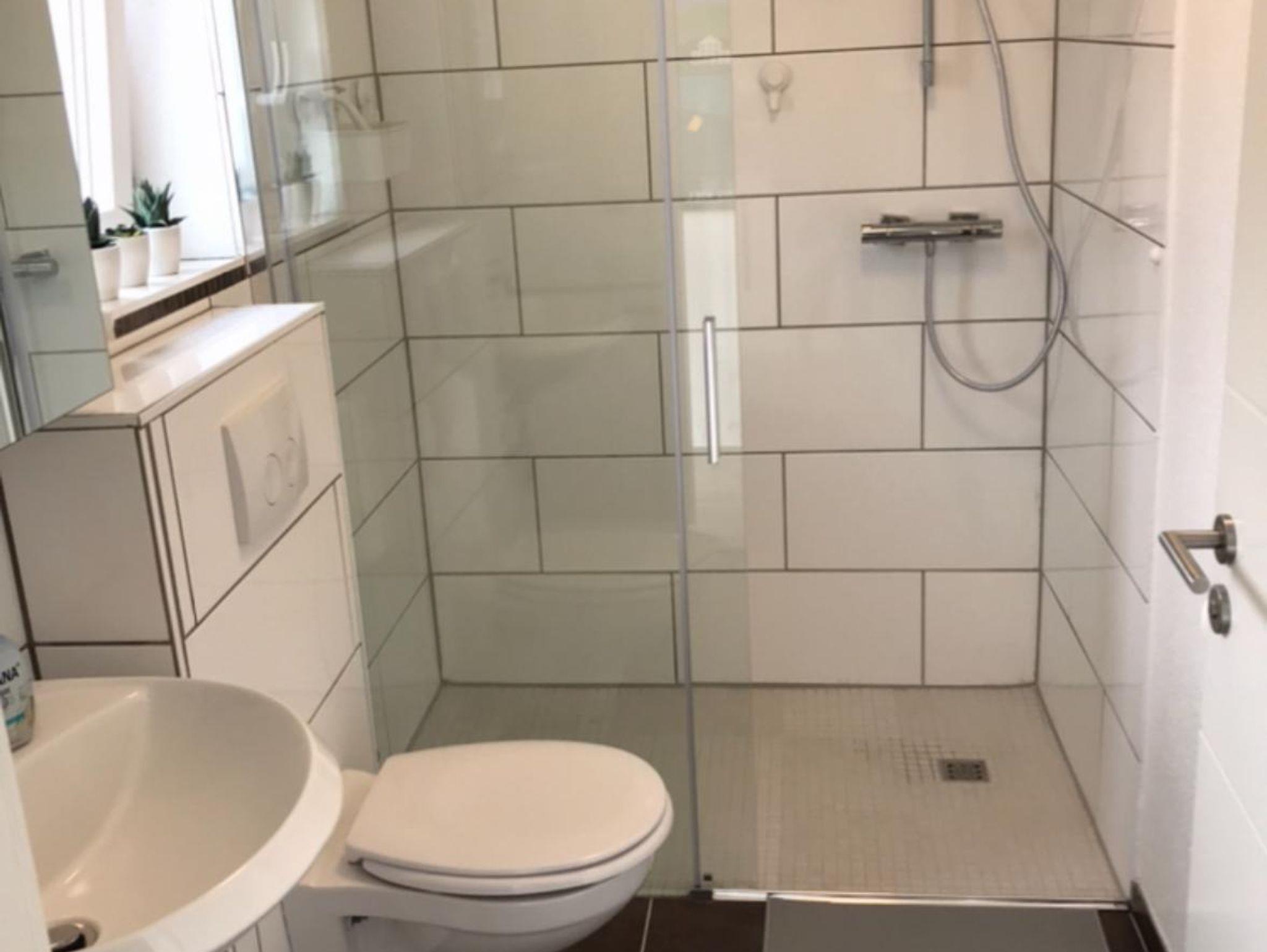 • 1 Badezimmer mit geräumiger Dusche und WC