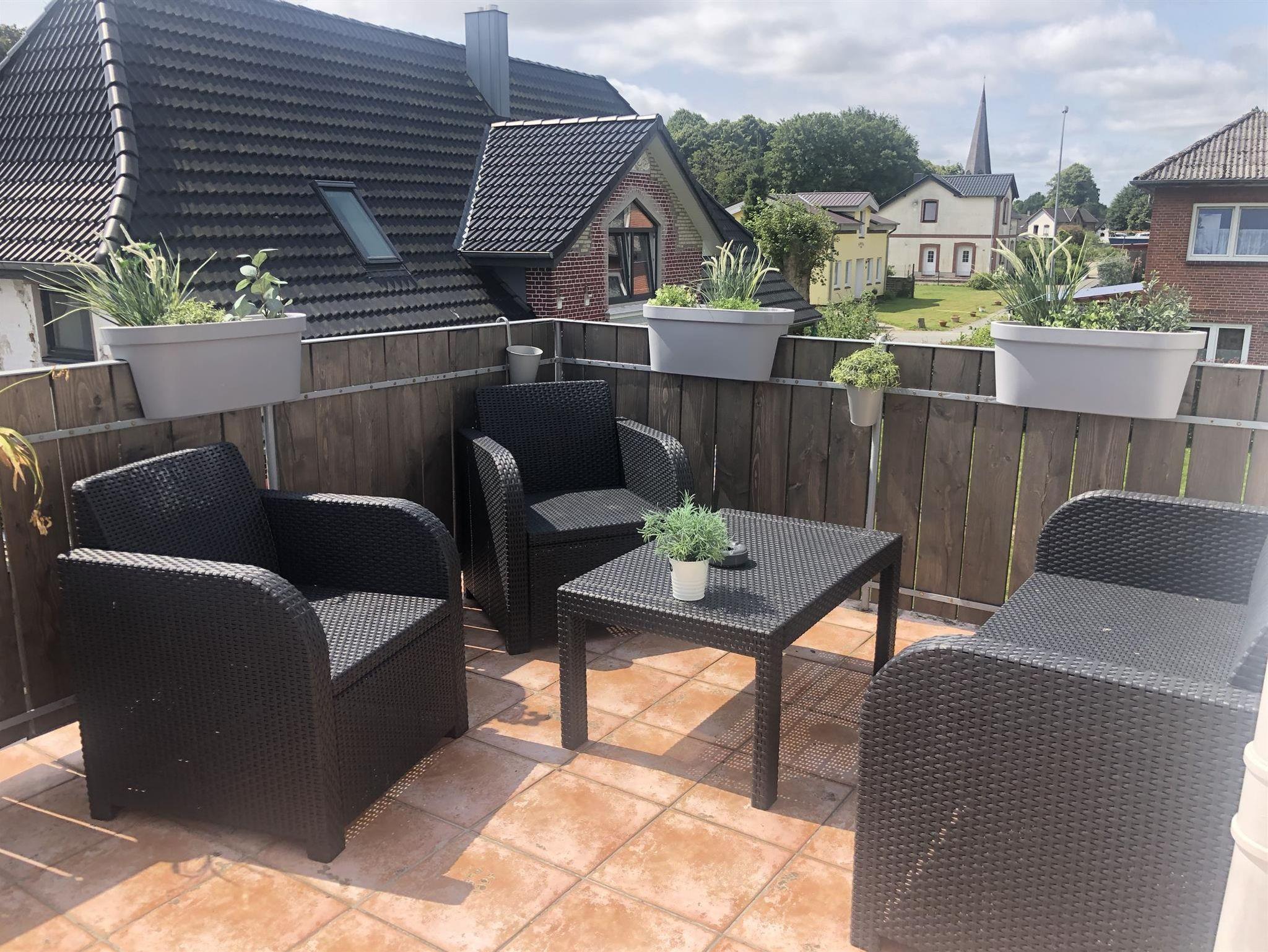 • 1 Terrasse zur Südseite mit Balkonmöbeln