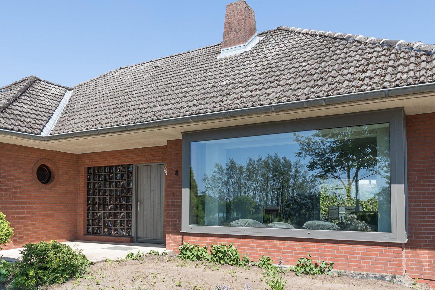 Der große eingewachsene Garten und die geschützte Terrasse mit Gartenmöbeln und Grill runden das Bild ab.