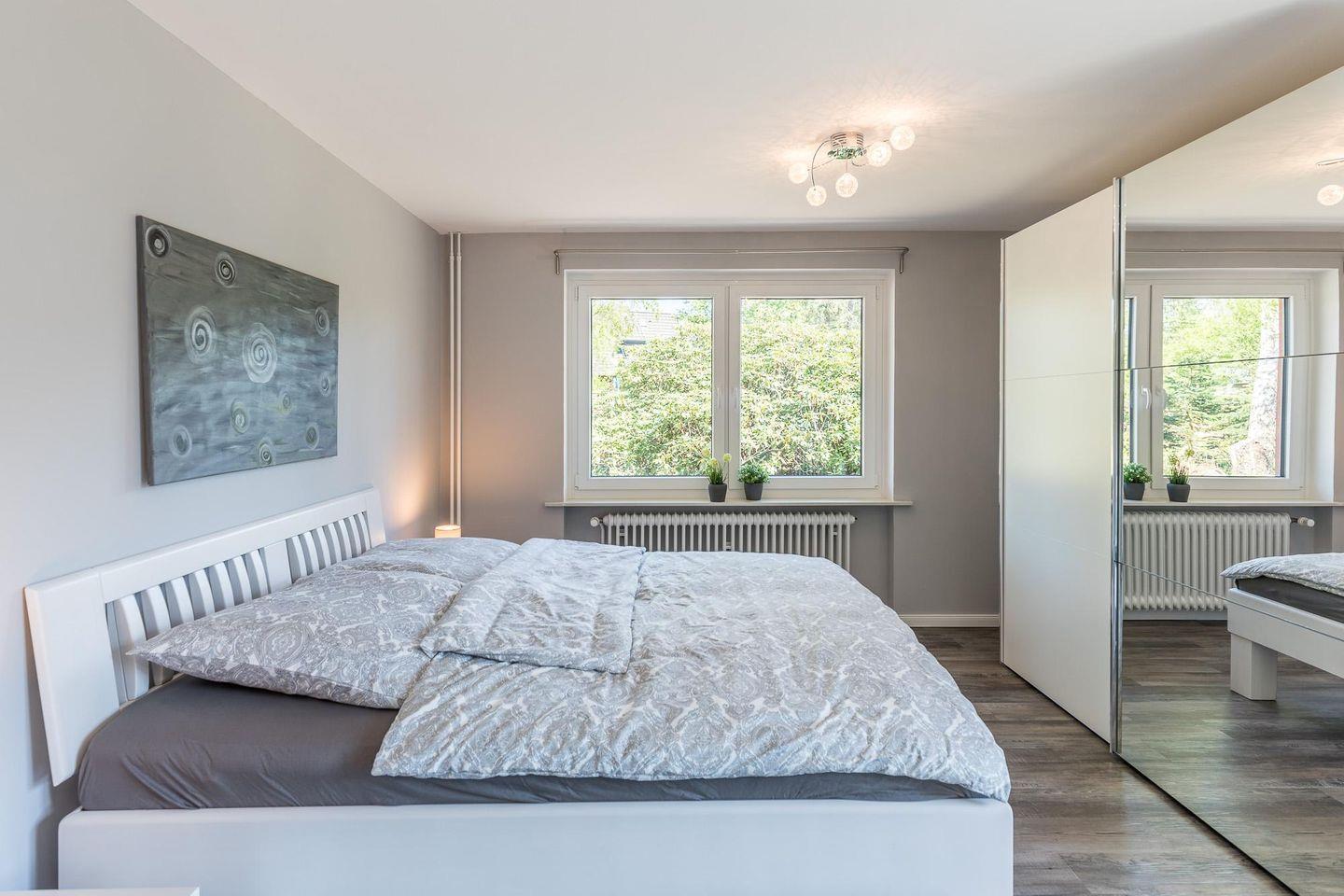 Die 3-Zimmerwohnung für bis zu 4 Personen verfügt über ein Schlafzimmer mit einem Doppelbett (180 x 200) und einem weiteren Schlafzimmer mit zwei Einzelbetten (90 x 200). Das Duschbad und das separate WC befinden sich im gleichen Flur. Im Wohnzimmer können Sie in der Wohnlandschaft gemütliche Stunden bei einem spannenden Buch verbringen oder aber den großen LCD-TV einschalten. Die offene, moderne und hochwertig ausgestatteten Küche mit Backofen, Ceranfeld, Geschirrspüler, Mikrowelle, Toaster, Kaffeemaschine (Filtergröße 4), Wasserkocher uvm. bietet Ihnen alle Annehmlichkeiten für Ihren entspannten Urlaub.