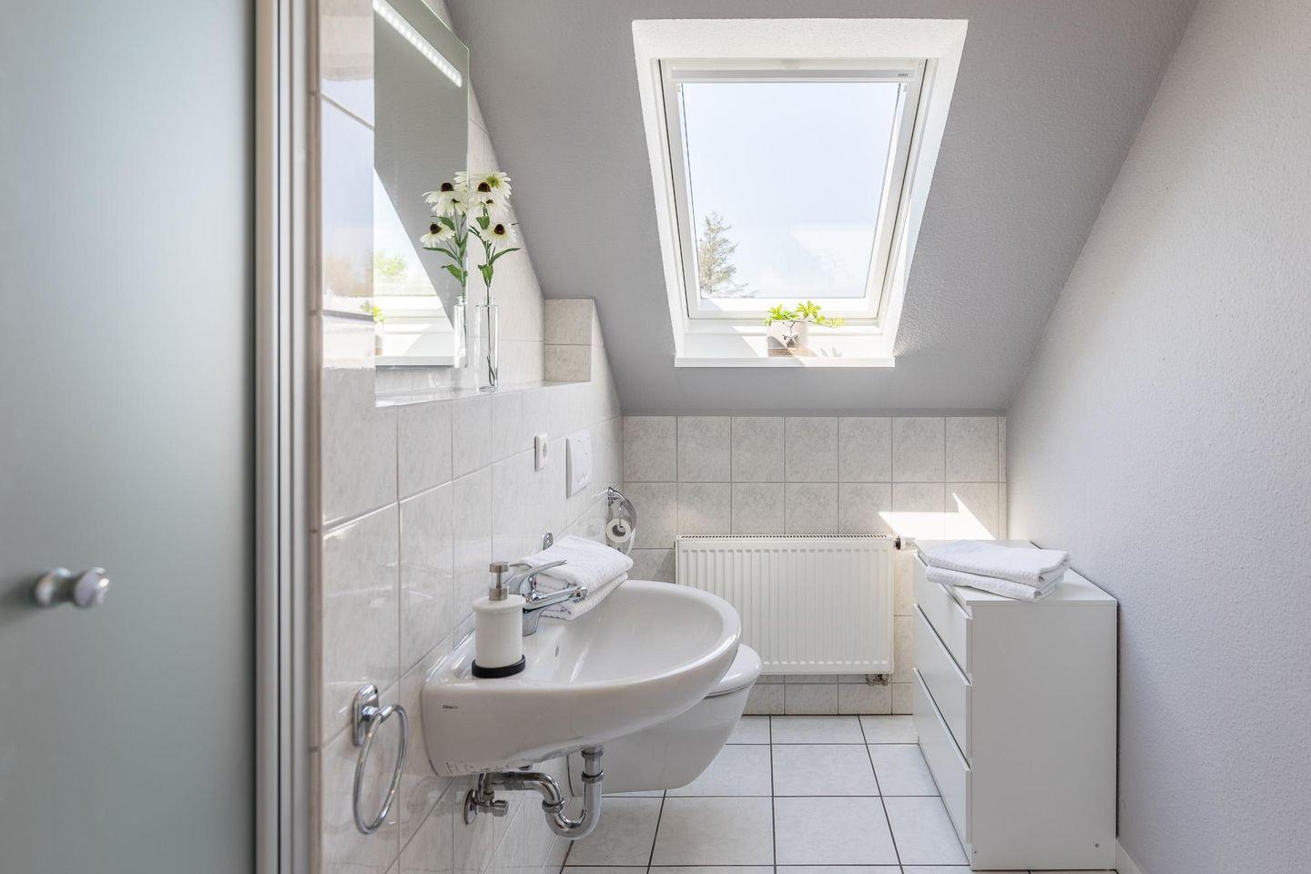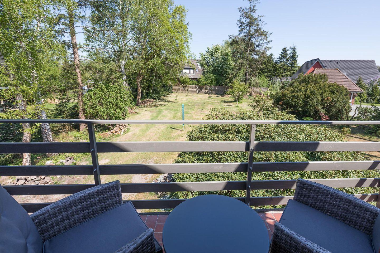 Die 3-Zimmerwohnung für bis zu 4 Erwachsene und ein Kind verfügt über ein Schlafzimmer mit einem Doppelbett (180 x 200) und ein Einzelbett (90 x 200) und einem weiteren Schlafzimmer mit zwei Einzelbetten (100 x 200). Im Wohnzimmer können Sie auf dem gemütlichen Sofa einen spannenden Film ansehen oder aber in der Leseecke ein spannendes Buch genießen. Die große, moderne und hochwertig ausgestatteten Küche mit Esstisch, Backofen, Ceranfeld, Geschirrspüler, Mikrowelle, Toaster, Kaffeemaschine (Filtergröße 4), Wasserkocher uvm. bietet Ihnen alle Annehmlichkeiten für Ihren entspannten Urlaub. Von hier aus haben Sie Zugang zum geschützten Balkon mit Aussicht auf den großen eingewachsenen Garten.