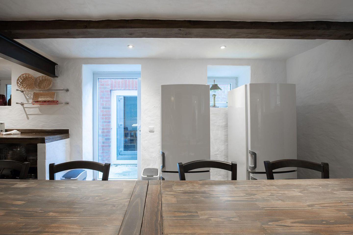 Das Ferienhaus verfügt insgesamt über fünf Schlafzimmer auf drei Etagen mit jeweils einem direkt verbundenen Badezimmer. Die sehr gut ausgestattete Küche im unteren Geschoss wird gemeinschaftlich durch unsere Gäste genutzt und verfügt über eine Geschirrspülmaschine, zwei Kühlschränke, zwei Herde, Kaffeemaschine, Wasserkocher, Toaster uvm.