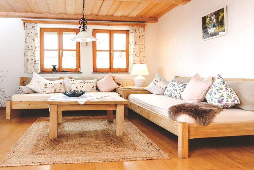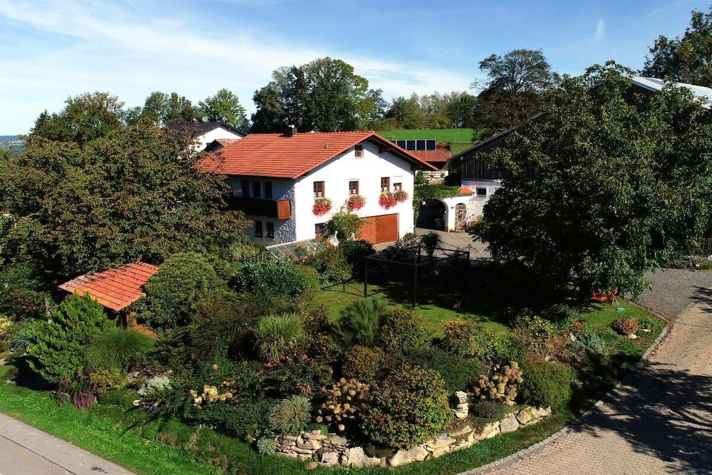 Unsere Ferienwohnung hat eine Größe von 110 m² Tittling/Fürsteneck und verfügt über eine gut ausgestattete Küche mit Spülmaschine, Mikrowelle, usw. Die Ferienwohnung "Tittling-Fürsteneck" befindet sich im Obergeschoss und bietet zwei große Schlafzimmer , ein Badezimmer mit Wanne, Dusche und WC; ein zweites Bad mit Dusche und WC, eine gut ausgestattete Küche, ein Esszimmer für 6 Pers. Wohnzimmer und einen großen Balkon.Zusätzliche Kinderbetten sind möglich. Grillplatz und Gartenhaus. Viele Tiere am Hof. Spielmöglichkeiten für Kinder, Kicker, Tischtennis, Sandkasten, Schaukel, großes Trampolin etc.