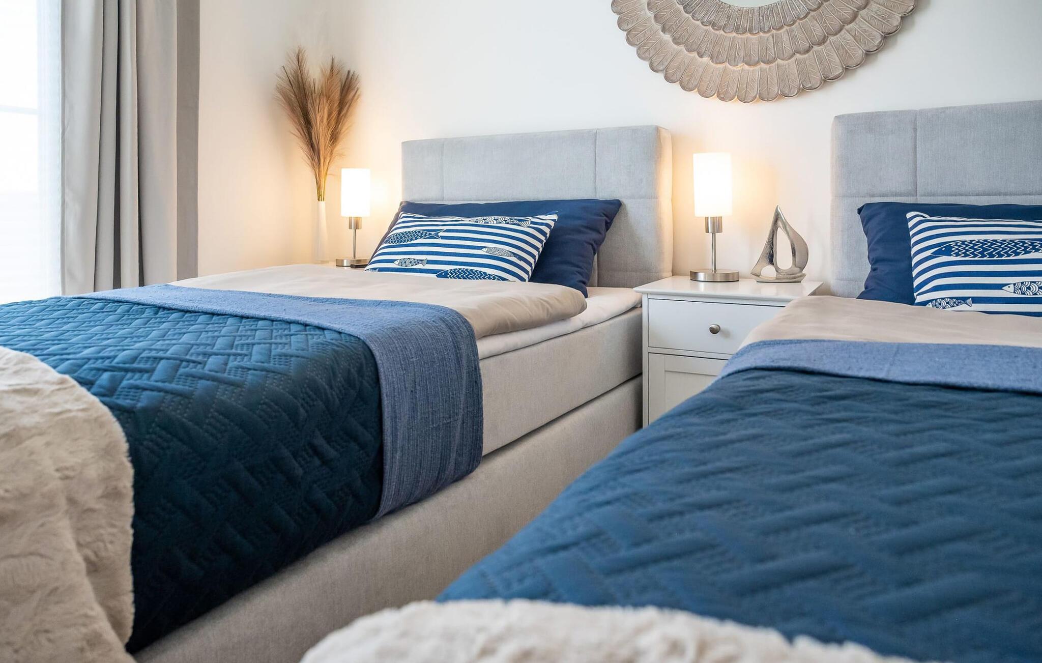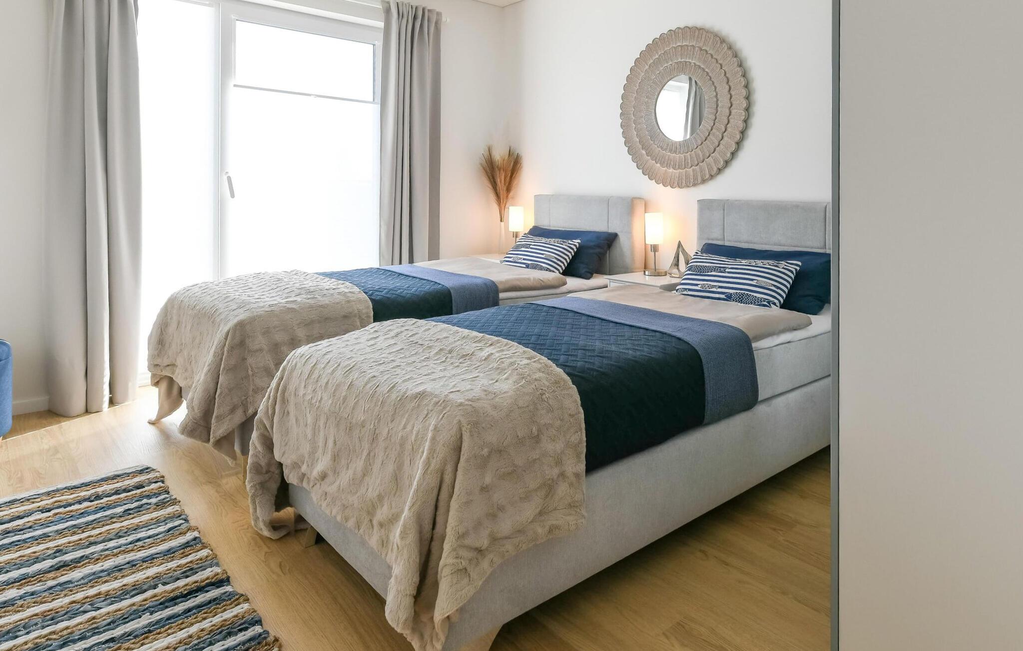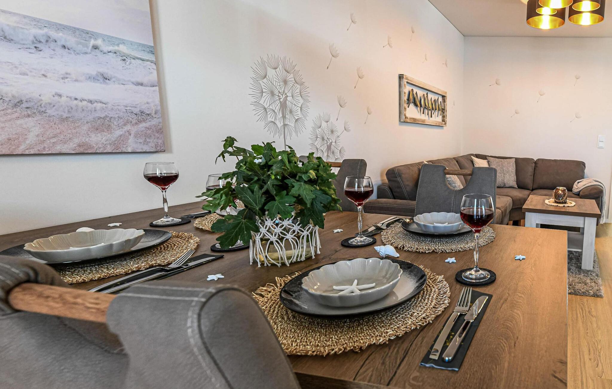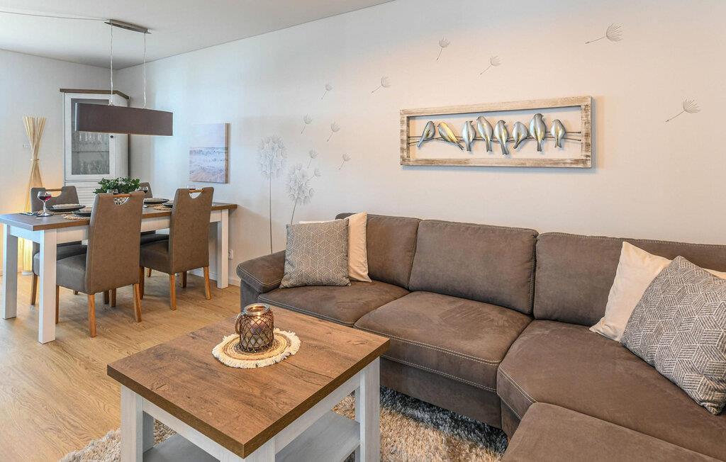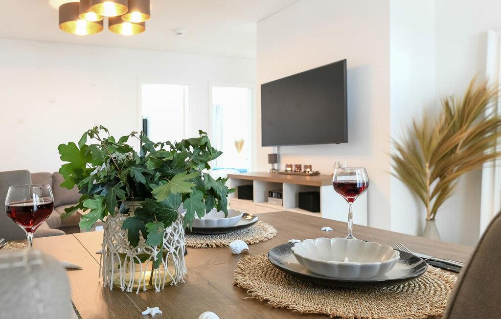 Hygge Family er en rummelig og rummelig ferielejlighed i stueetagen. Indrettet i en lys og venlig skandinavisk stil, føler I jer velkommen her fra første øjeblik. Sandstranden Weidefelder med kiosk, restaurant og strandstole ligger i gåafstand og er et attraktivt rejsemål på alle tider af året. Minigolfbanen med maritimt tema ligger også i umiddelbar nærhed og glæder både store og små. Den livlige havnepromenade med indkøbsmuligheder og lystbådehavnen kan også nås på få minutter. Med gulv-til-loft vinduerne og den store tilstødende terrasse er den åbne stue/alrum hjertet af Hygge Family og imponerer med sin moderne indretning med skandinavisk flair. Den hyggelige opholdsstue sikrer krammefaktoren. I de kolde årstider giver pejsen hyggelig varme. Føl jer godt tilpas og nyd jeres ferie i Schlei-regionen. Har I lyst til at lave kreativ mad, mens I er på ferie, er I i gode hænder i det moderne køkken-alrum. Dette er ideelt udstyret og vil forbløffe amatørkokke. I kommer direkte ind på den store terrasse fra opholdsstuen. Her kan I nyde solskinstimerne i naturen eller afslutte dagen med en afslappet grillaften. To soveværelser er tilgængelige til afslapning om natten. Det ene soveværelse er udstyret med en dobbeltseng, mens det andet soveværelse har to enkeltsenge. Begge soveværelser er også udstyret med et fladskærms-tv. Efter en travl feriedag kan I nyde wellness-øjeblikke på badeværelset med en højkvalitets bruser i gulvniveau og en infrarød sauna. En feriedag kunne ikke ende bedre. At arbejde på Østersøen er også muligt for jer i Hygge Family. Der er et bærbart bord til rådighed for jer til hjemmekontordage. Der er en privat parkeringsplads til rådighed for jer foran ferielejligheden. I kan opbevare jeres cykler i cykelskuret. Vores favoritsted: At tilbringe en hyggelig aften med familien på sofaen med en knitrende pejs... Bemærk venligst: OstseeResort Olpenitz er meget populært, og der bygges fortsat i parken. Ikke desto mindre kan I se frem til en 5-stjernet standard og et førsteklasses ophold. Byggeaktiviteterne kommer ikke til at forstyrre jer på ferien, og derfor gives der ikke yderligere afslag i prisen.