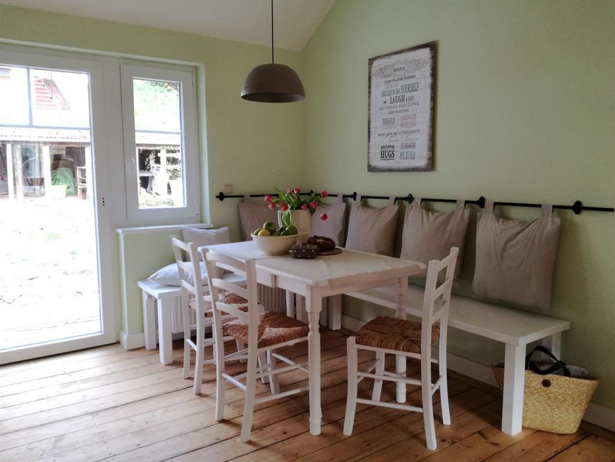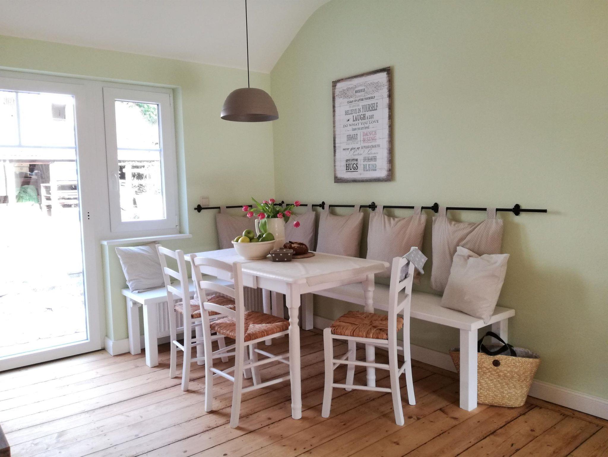 Die Küche ist mit Cerankochfeld, Spülmaschine, Backofen, Kühlschrank mit Gefrierfach, Kaffeepad-Maschine, Toaster, und Wasserkocher ausgestattet. Eine gemütliche Essecke lädt zum Verweilen ein. Für unsere kleinen Gäste stellen wir gerne einen Hochstuhl zur Verfügung.