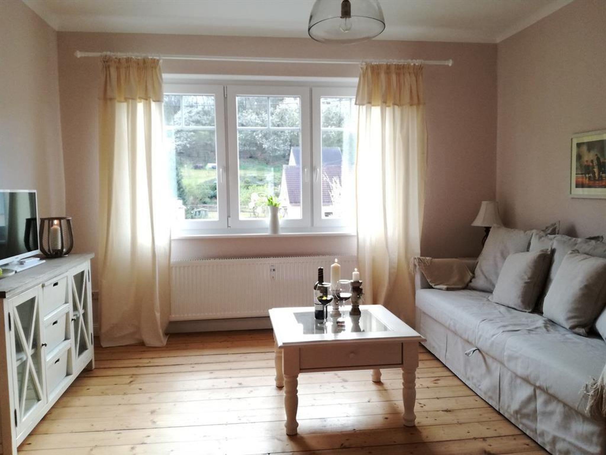 Der Wohnraum ist zur Küche teilweise durch altes Fachwerk abgeteilt. Auf der großen Couch, (die bei Bedarf als zusätzliche Schlafstatt genutzt werden kann) lässt sich wunderbar entspannen. Zur Unterhaltung stehen Ihnen hier Satelliten-TV, DVD Player, Stereoanlage, Gesellschaftsspiele und Bücher zur Verfügung.