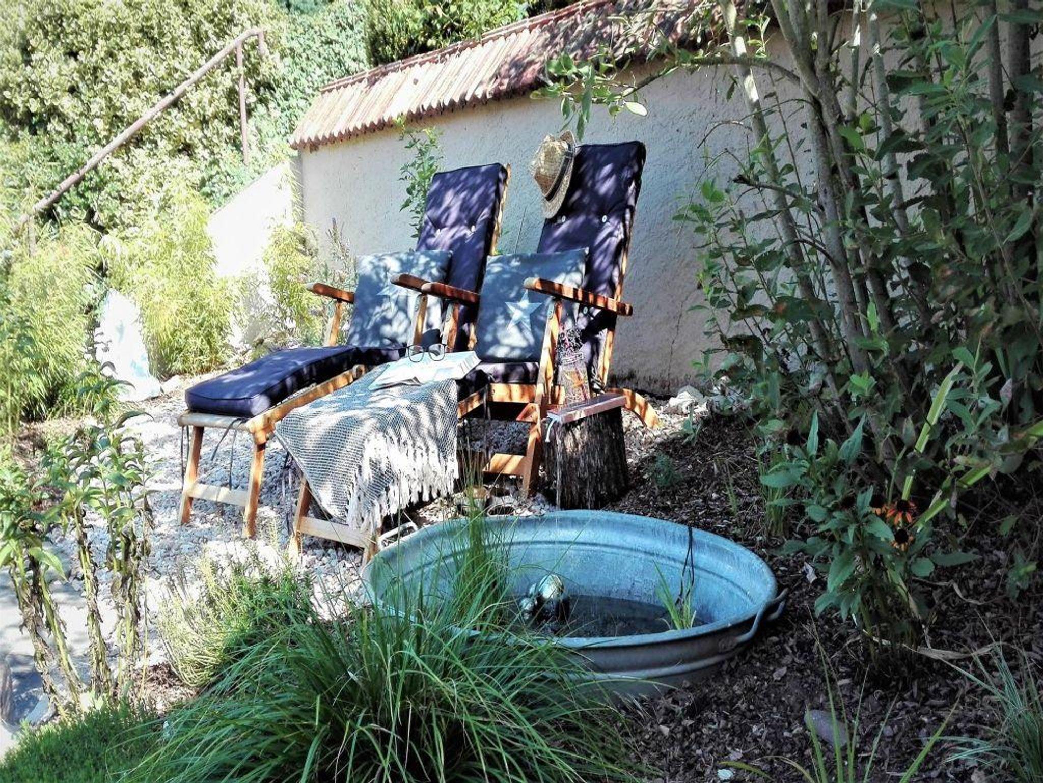 Wir, ihre Gastgeber, lieben es im Garten zu entspannen, deshalb wollten wir unseren Gästen auch die Möglichkeit geben, im Grünen zu wohnen und haben kleine aber feine Gartenzimmer für unsere Gäste gestaltet. Direkt aus der Küche gelangen Sie auf die Holzterrasse, auf der man wunderbar in der Sonne frühstücken kann. Über die Terrasse erreichen Sie den Garten. Dort gibt es auf einer Ebene, eine mit gemütlichen Sitzmöbeln ausgestattete Laube. Eine Grillgelegenheit darf besonders in unserer Region nicht fehlen. Unser Tipp: Probieren Sie mal einen Original Idar-Obersteiner Spießbraten. Müde von einer ausgedehnten Wanderung in unserer schönen Region? Die Liegestühle stehen für unsere Gäste bereit. Bei einem Glas Nahewein können Sie hier die letzten Sonnenstrahlen des Tages genießen.