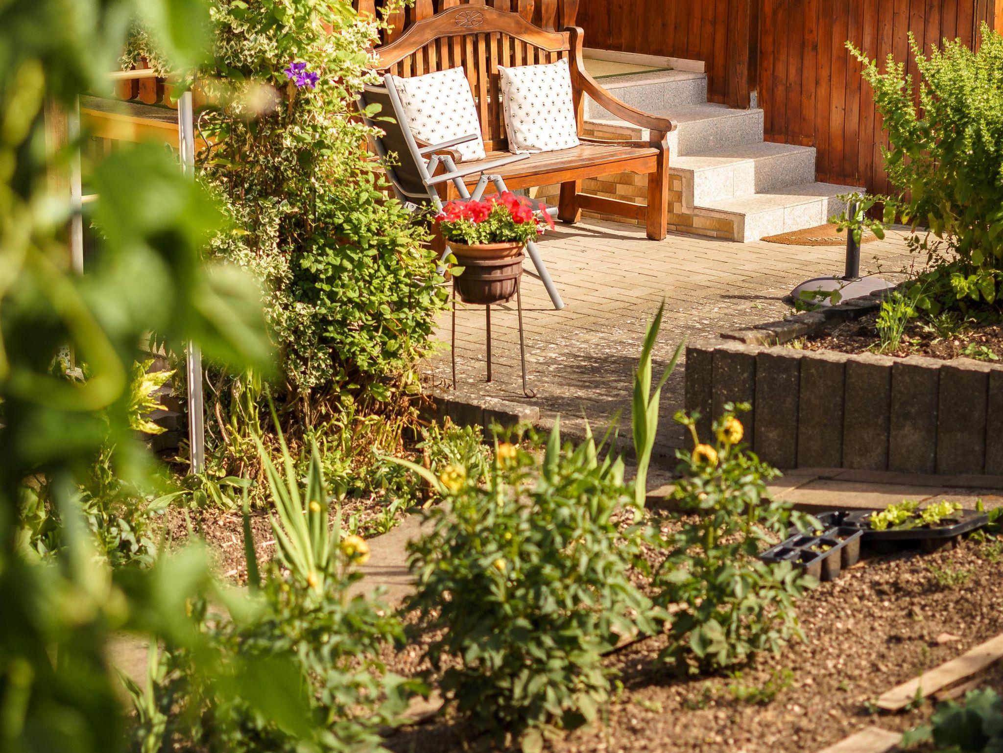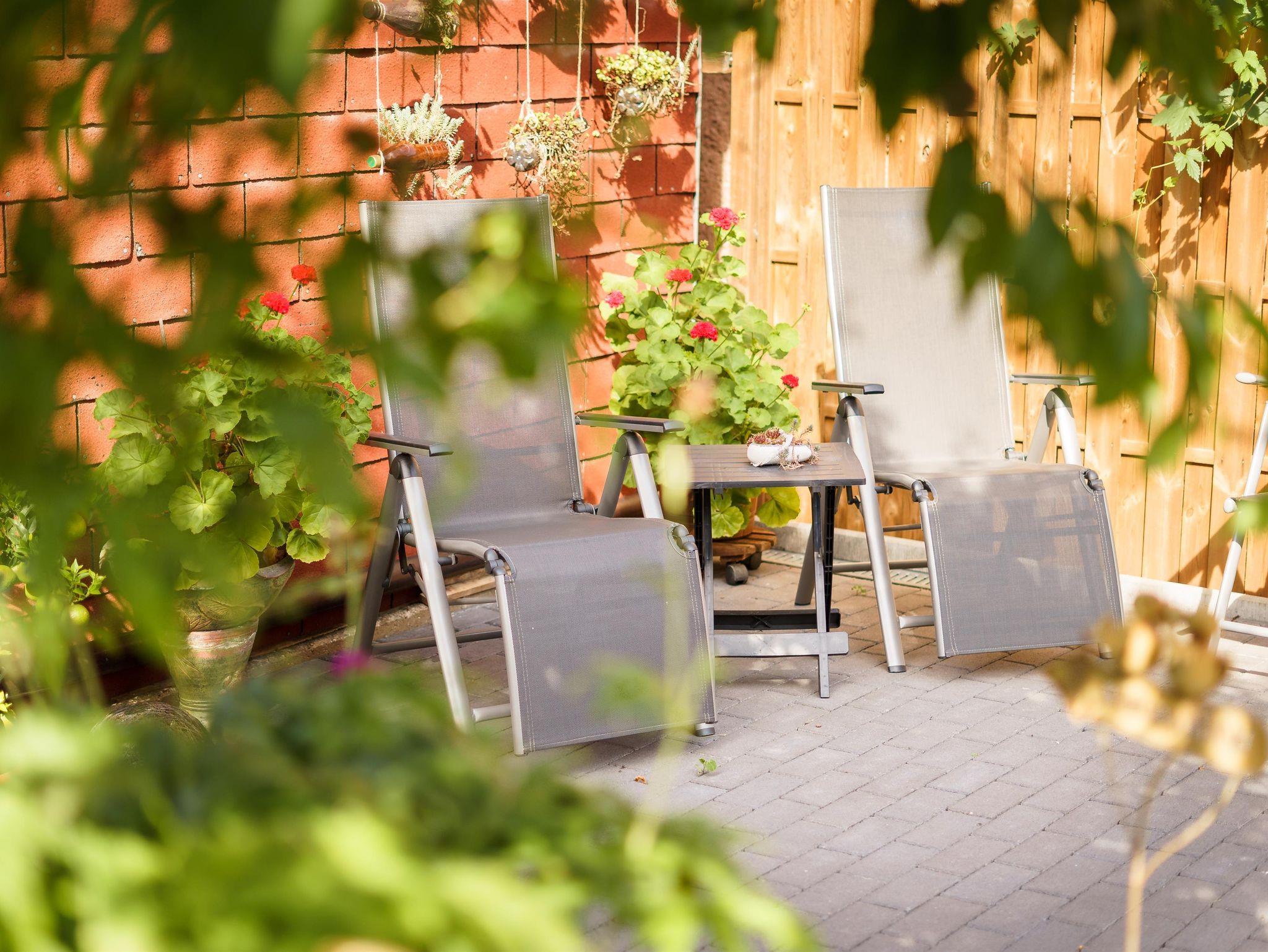 Die Ferienwohnung verfügt über einen Parkplatz, eigenen Eingang mit überdachter Terrasse sowie