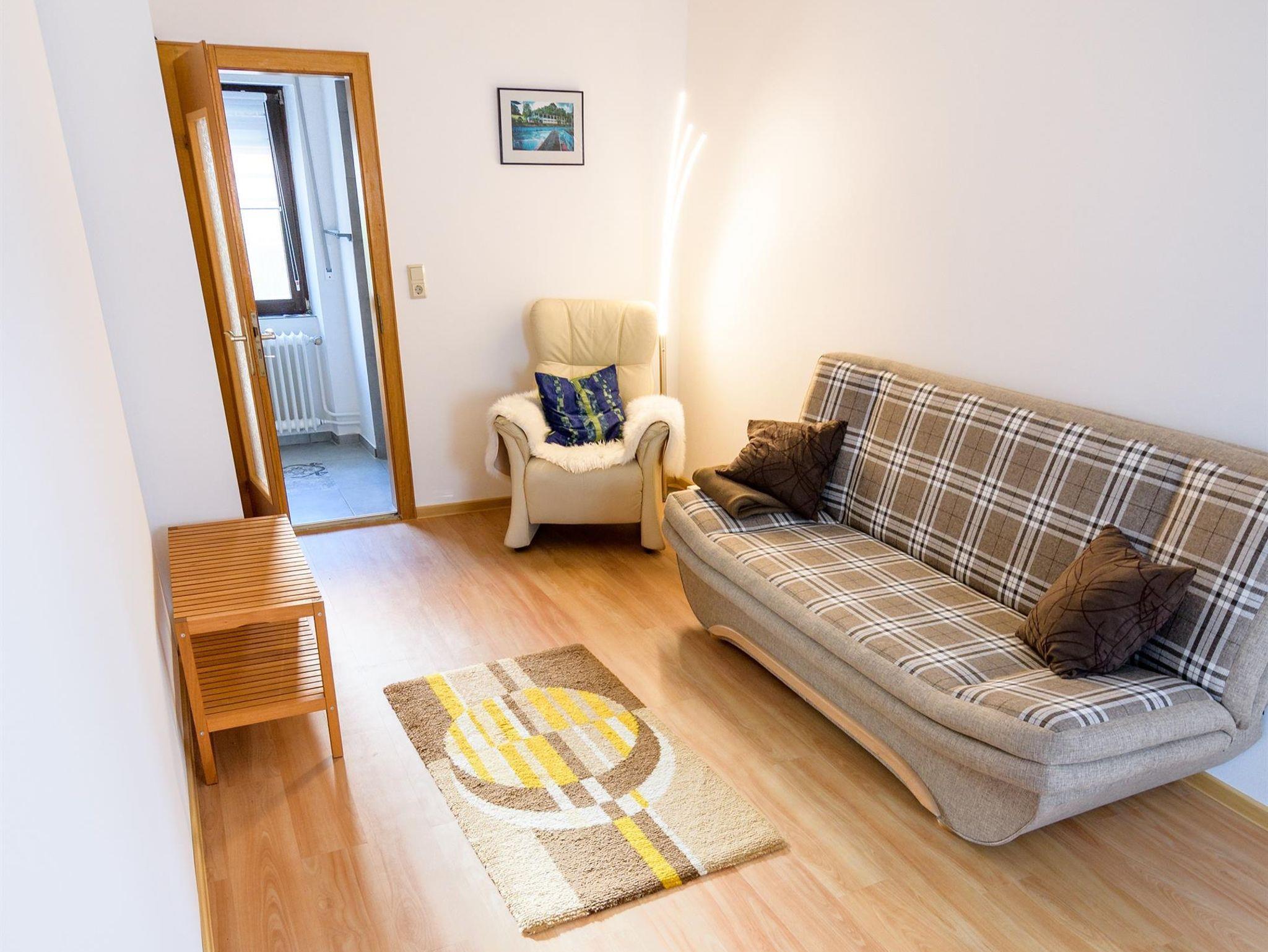 Im Vorraum sowie im Eingang stehen jeweils eine Schlafcouch die im Handumdrehen zu Schlafsofas