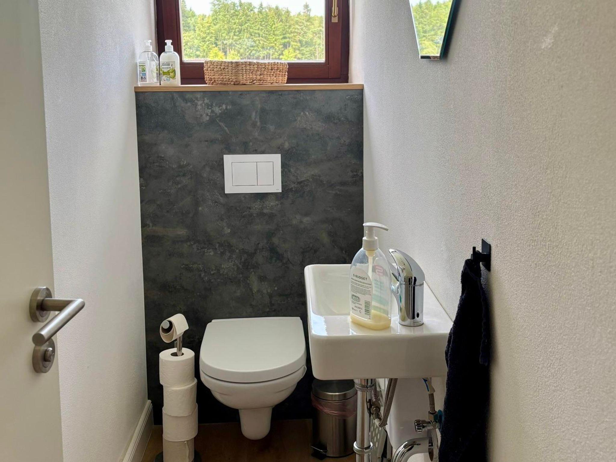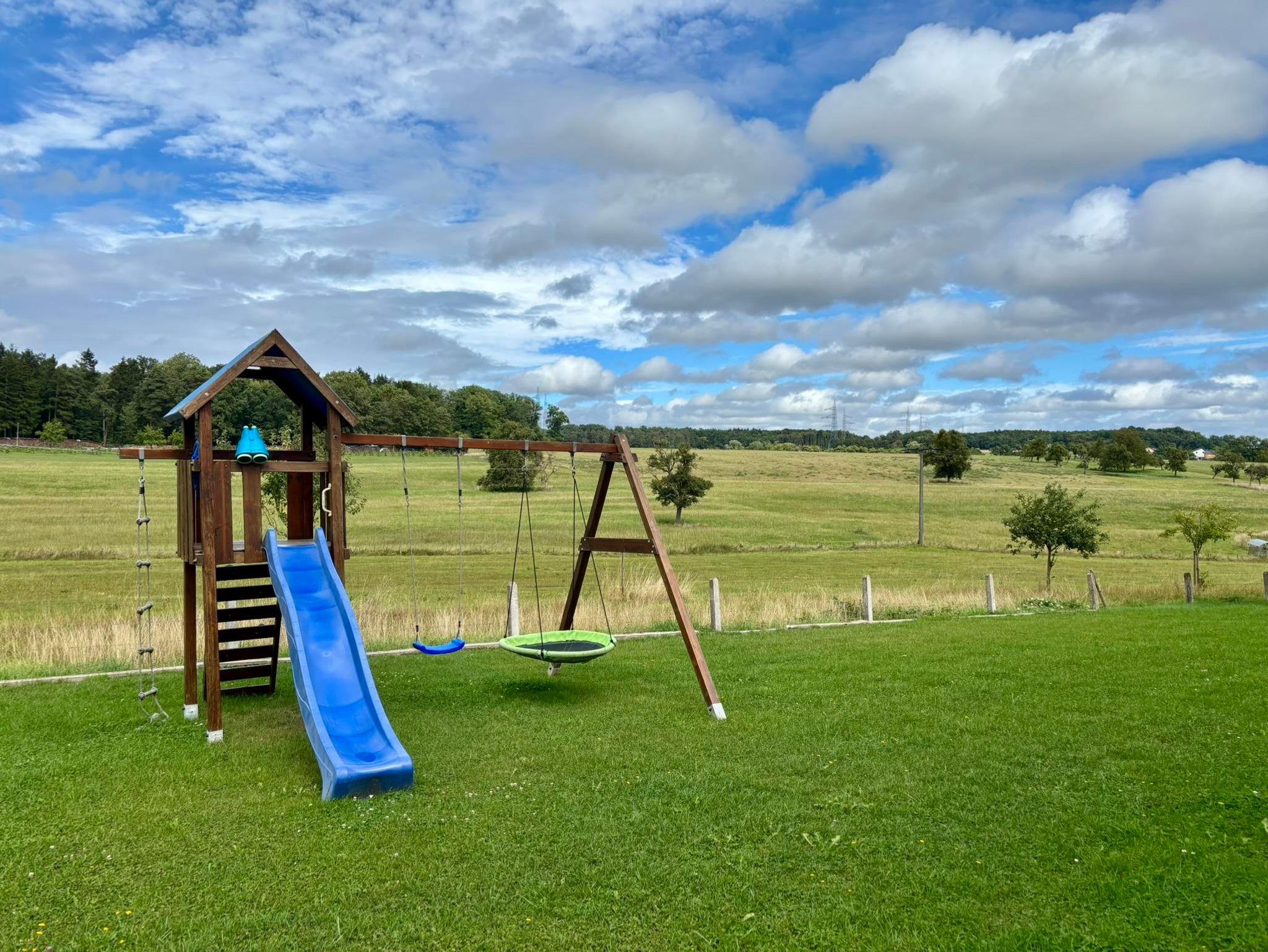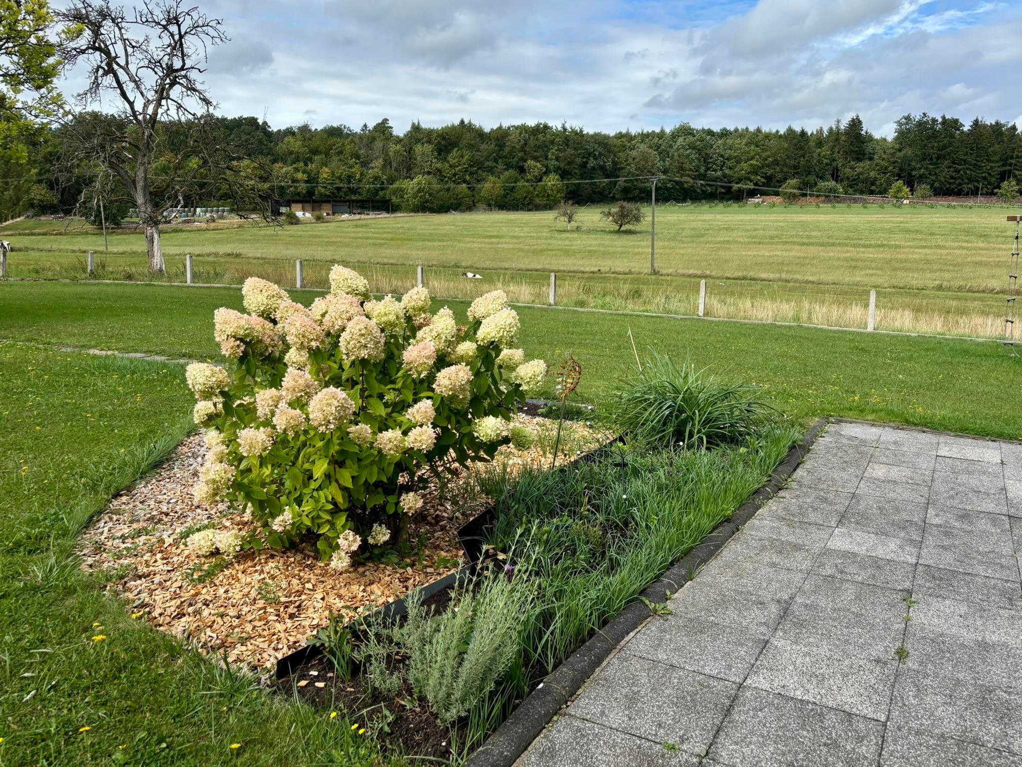 Das Haus liegt am Ortsrand mit Blick auf Wiesen und Wald. Rad- und Wanderwege in unmittelbarer Nähe.
