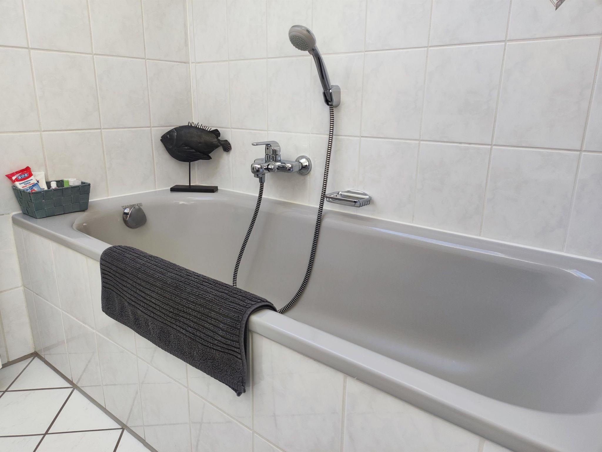 Das kleine aber feine Bad ist mit WC, Badewanne und Dusche ausgestattet.